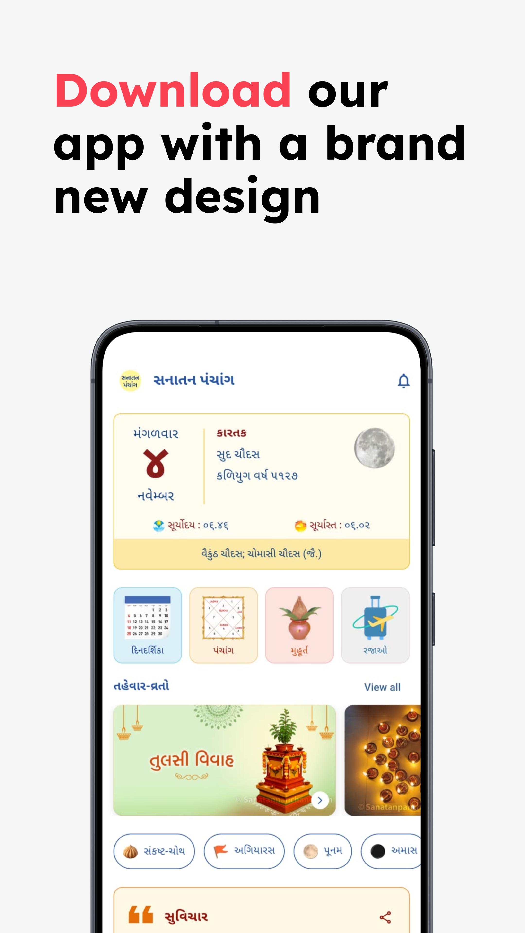 Gujarati Calendar 2026, डेवलपर Sanatan Panchang से आ रहा है, अतीत में Android सिस्टर्म पर चल रहा है।
