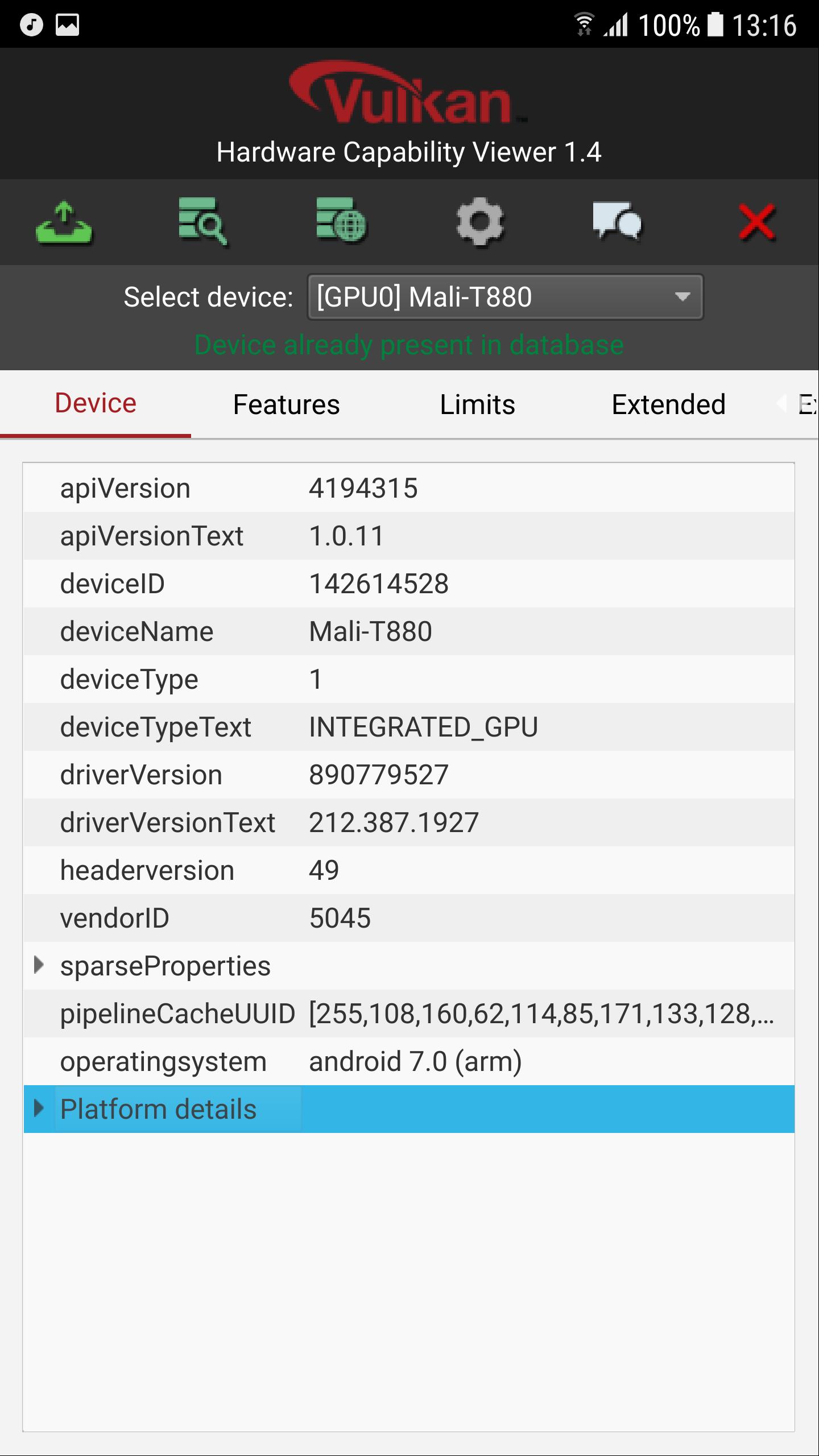 Hardware CapsViewer for Vulkan, डेवलपर Sascha Willems से आ रहा है, अतीत में Android सिस्टर्म पर चल रहा है।