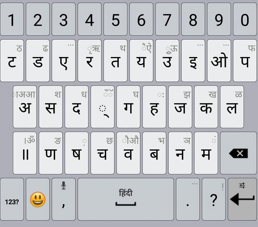 हिंदी भाषा पैक में इनस्क्रिप्ट और कागज़ के हिंदी लेआउट शामिल हैं।
