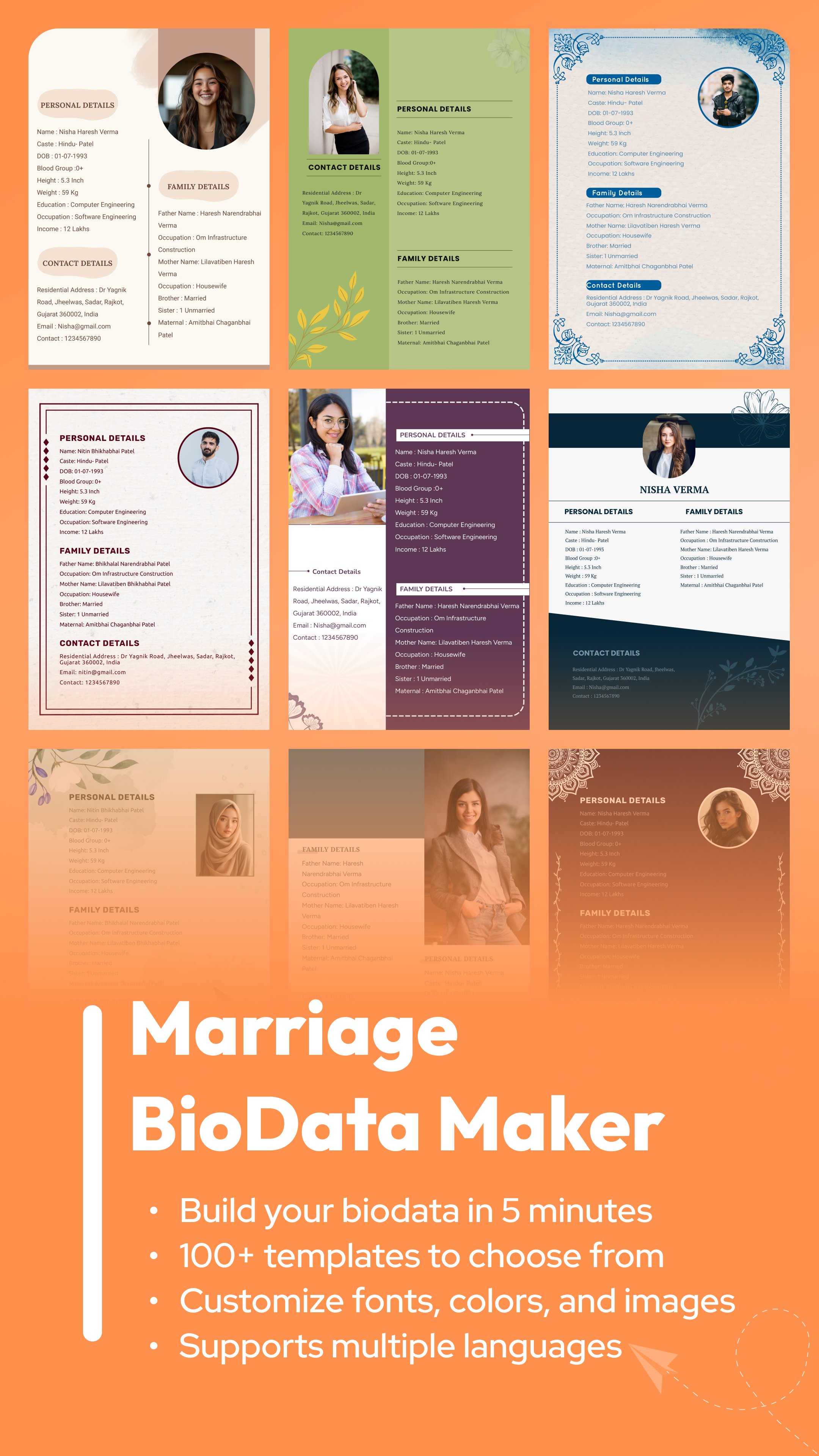 - यह बायो डेटा ऐप 8 भाषाओं को सपोर्ट करता है।