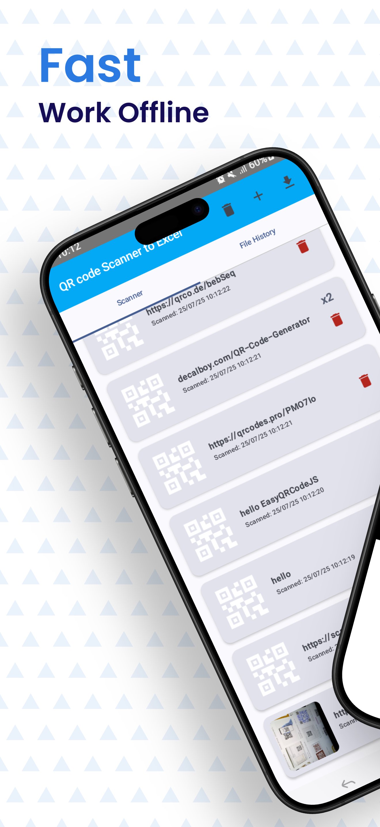 अपने पूरे स्कैन इतिहास को पेशेवर, उपयोग के लिए तैयार Excel (XLS) स्प्रेडशीट या PDF दस्तावेज़ों में आसानी से निर्यात करें। हमारी शक्तिशाली निर्यात सुविधा में आपके कस्टम कॉलम, टाइमस्टैम्प और मात्राएँ शामिल हैं, जो आपके व्यवसाय, ग्राहकों या व्यक्तिगत रिकॉर्ड के लिए बेहतरीन रिपोर्ट तैयार करती हैं।
