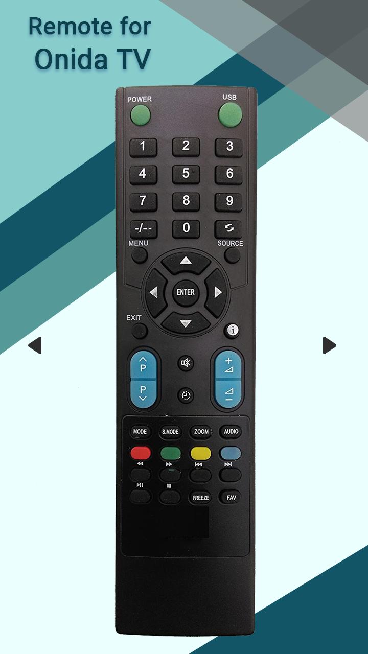 ओनिडा के लिए टीवी रिमोट को ओनिडा टीवी को नियंत्रित करने के लिए किसी भी सेटअप और आसान की आवश्यकता नहीं है लेकिन आईआर एमिटर मोबाइल फोन की आवश्यकता है