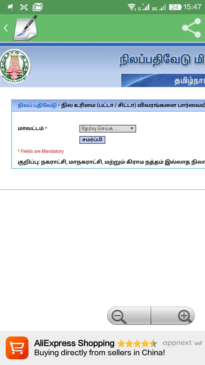 तमिल विवरण के साथ तमिलनाडु भूमि में इस अनुप्रयोग में पत्ता, चित्त की पूरी जानकारी की जाँच करें