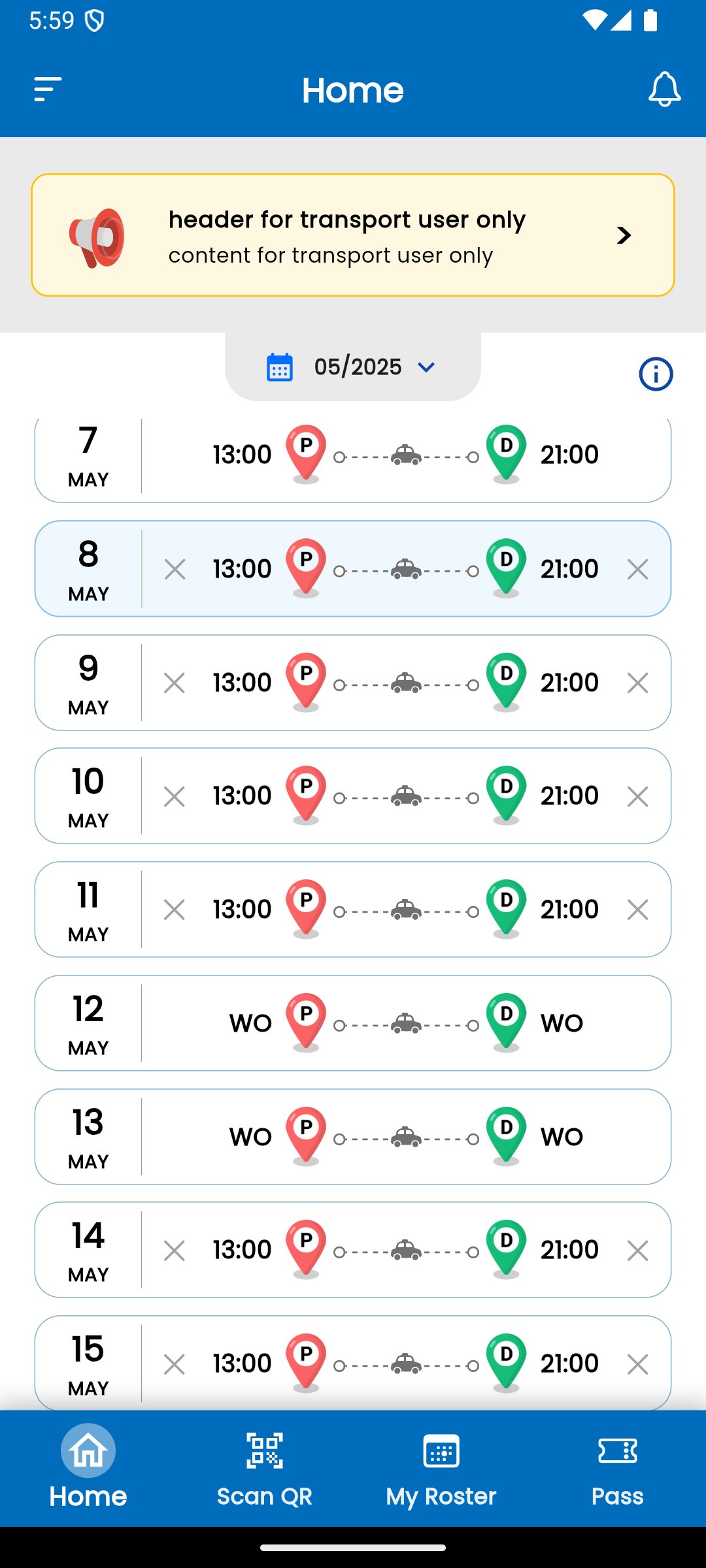 2. चालू माह के लिए अपनी नियोजित यात्राओं को देखने के लिए परिवहन कैलेंडर