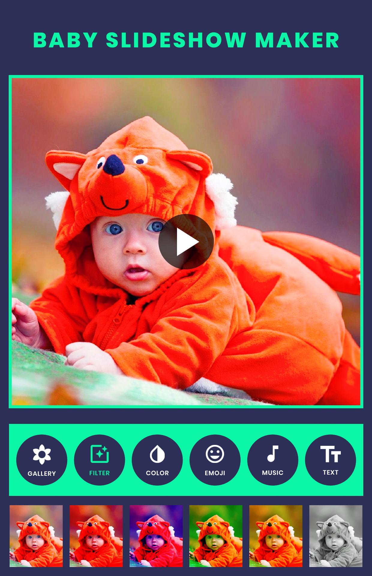 Baby Slideshow Maker With Music - Baby Photo is the easiest way to create, edit and share amazing music videos, slideshows and stories with your photos, videos and free licensed music.