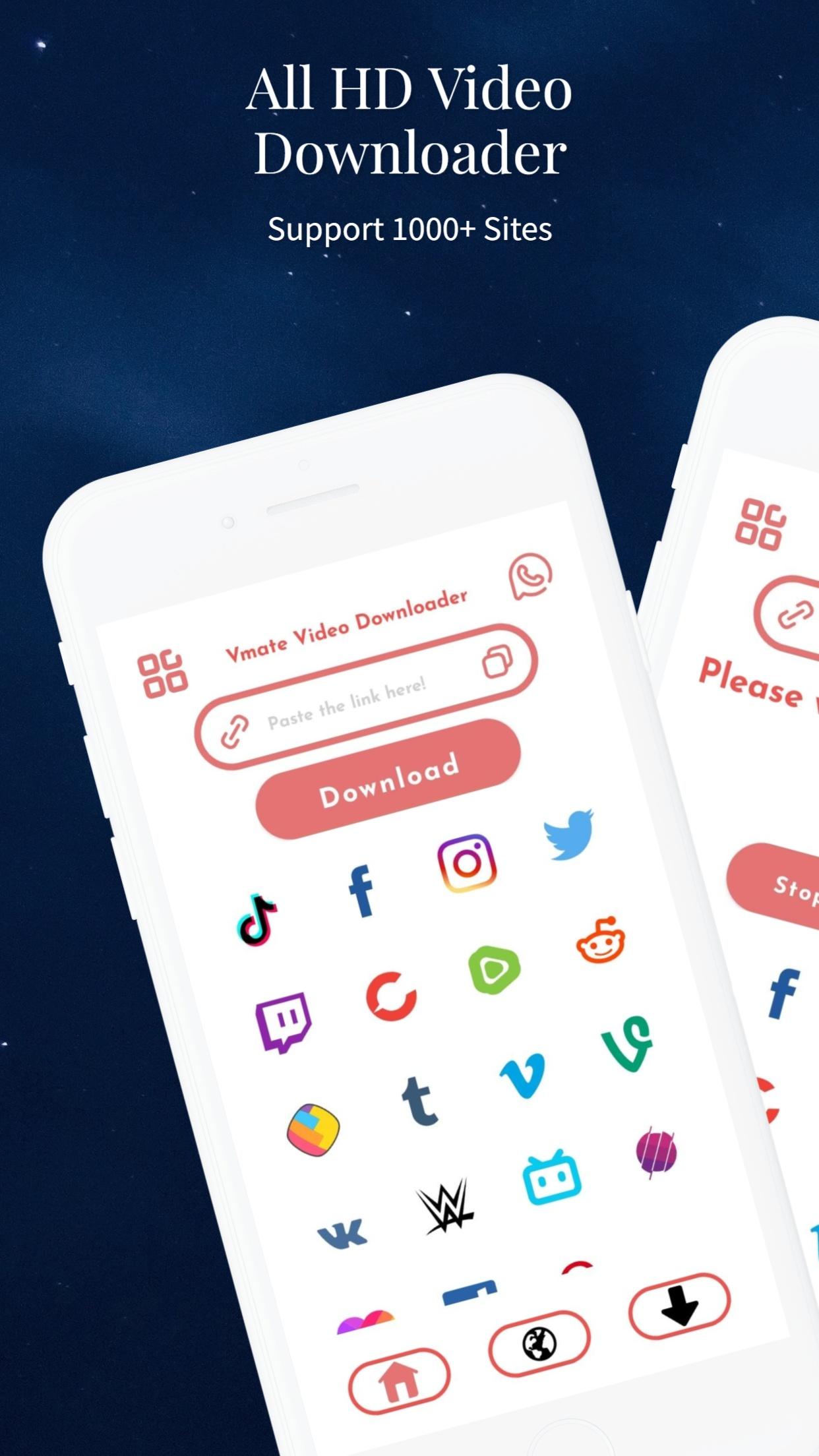 Vmate वीडियो डाउनलोडर Sbbtime द्वारा विकसित एक ऑल-इन-वन एप्लिकेशन है जो आपको विभिन्न सोशल मीडिया प्लेटफॉर्म, वेबसाइटों और अन्य स्रोतों से केवल एक क्लिक के साथ वीडियो डाउनलोड करने की अनुमति देता है। इस ऐप के साथ, आप सभी प्रारूपों में वीडियो, कहानियां, पोस्टर, स्थिति, फोटो इत्यादि आसानी से डाउनलोड कर सकते हैं और एचडी वीडियो डाउनलोड को फिर से शुरू करने और रोकने का समर्थन कर सकते हैं।