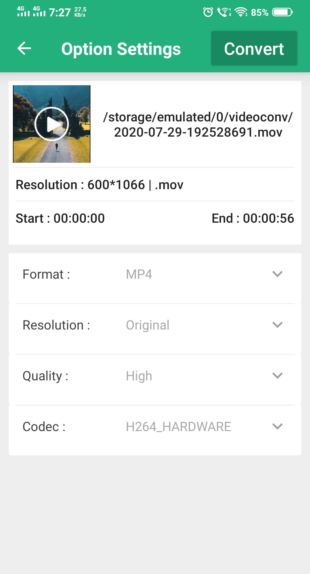 - यह ऐप एक वीडियो फ़ाइल के कनवर्टिंग, कंप्रेसिंग, चेंजिंग रिज़ॉल्यूशन, फ्रेम रेट (FPS), बिटरेट को सपोर्ट करता है।
