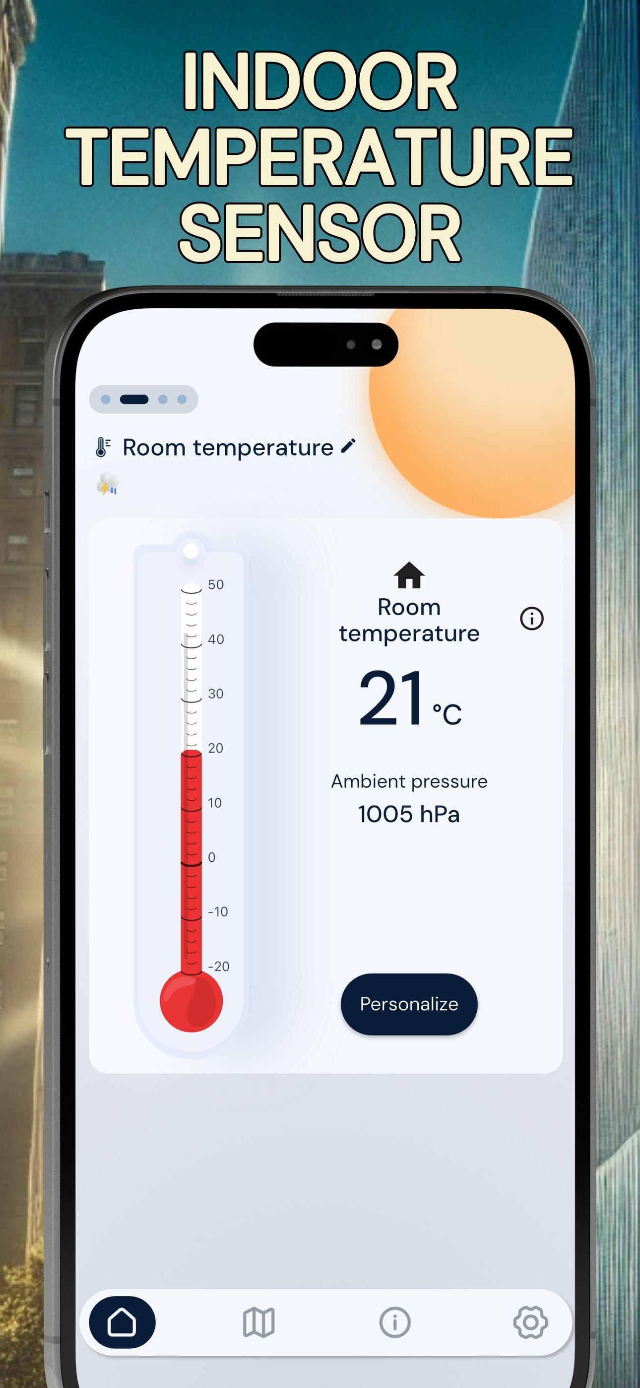 यह एप्लिकेशन बाहरी तापमान को मापने के लिए कई प्रकार की सुविधाएं प्रदान करता है, लेकिन भौगोलिक स्थान और सेंसर के लिए इनडोर और स्पष्ट तापमान, आर्द्रता स्तर और वायुमंडलीय दबाव धन्यवाद, इस प्रकार विश्वसनीय डेटा प्रदान करता है।