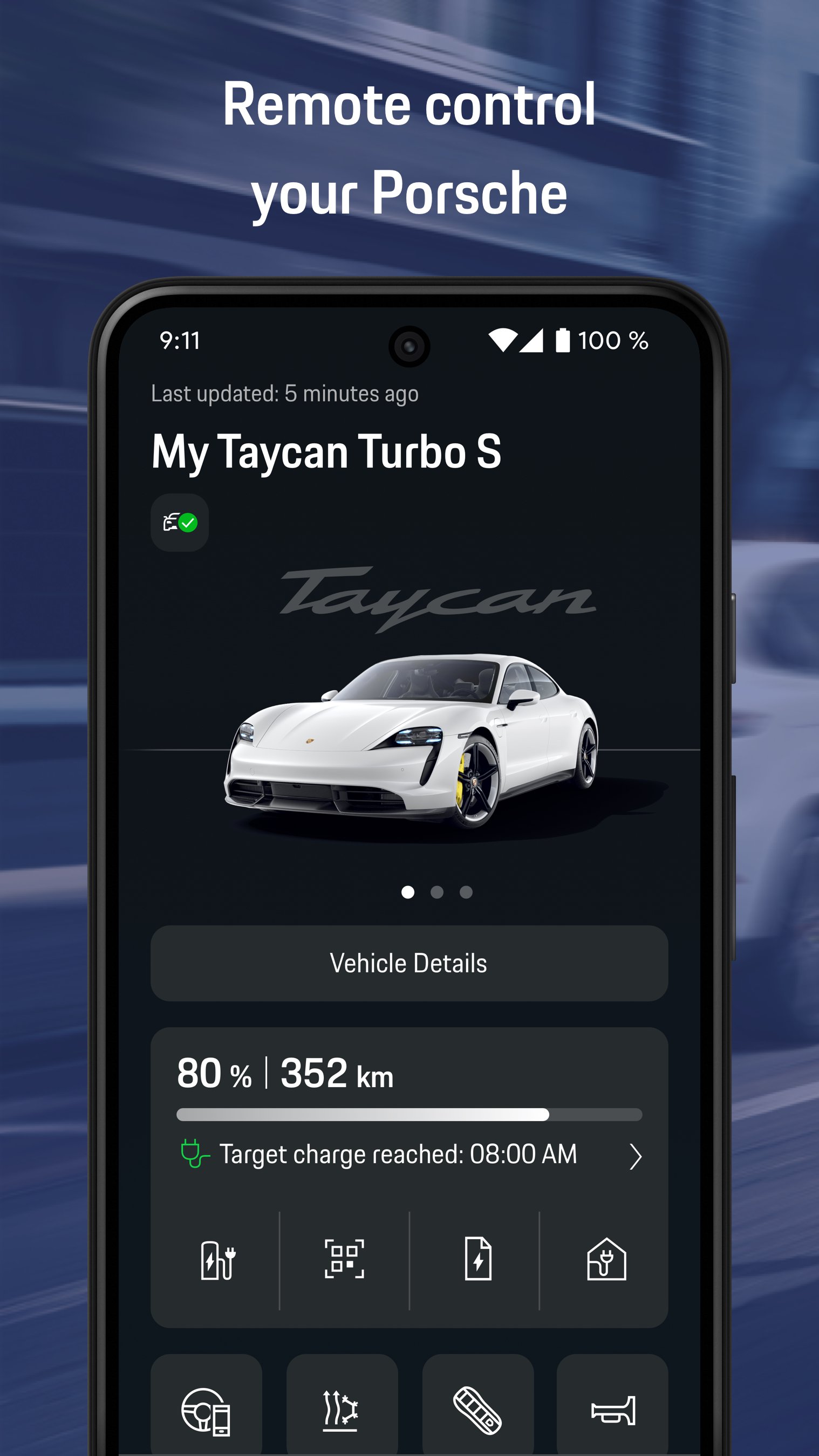 My Porscheアプリは、お客様のPorscheライフをサポートする理想的なパートナーです。現在のお車の状態をいつでも確認し、Connectサービスを遠隔操作できます。このアプリには常に改良が行われており、次のバージョンでは、さらに機能が追加される予定です。