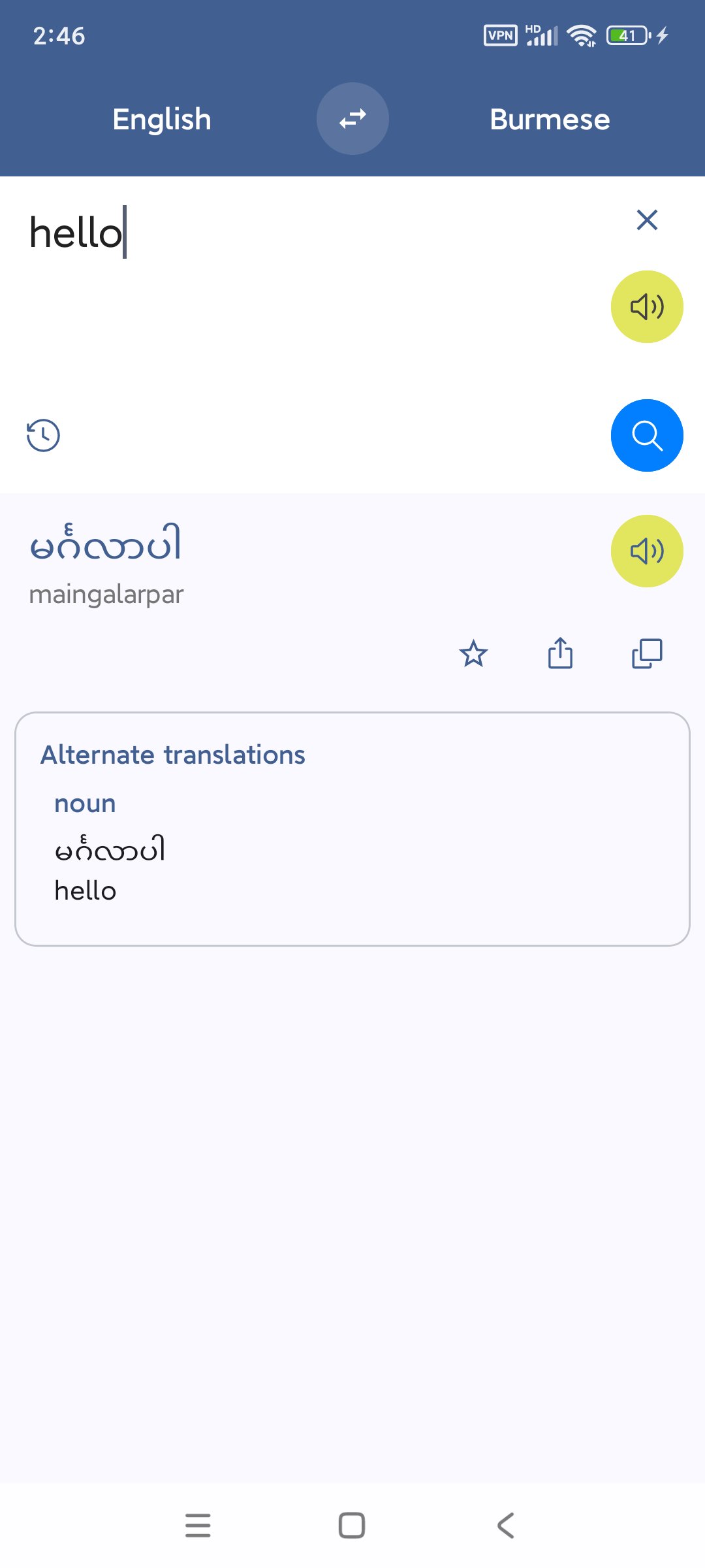 ミャンマー英語翻訳は英語とミャンマーの間の翻訳サービスを提供しています。あなたが単語や文章を翻訳することができ、言語を学ぶのに役立ちます。