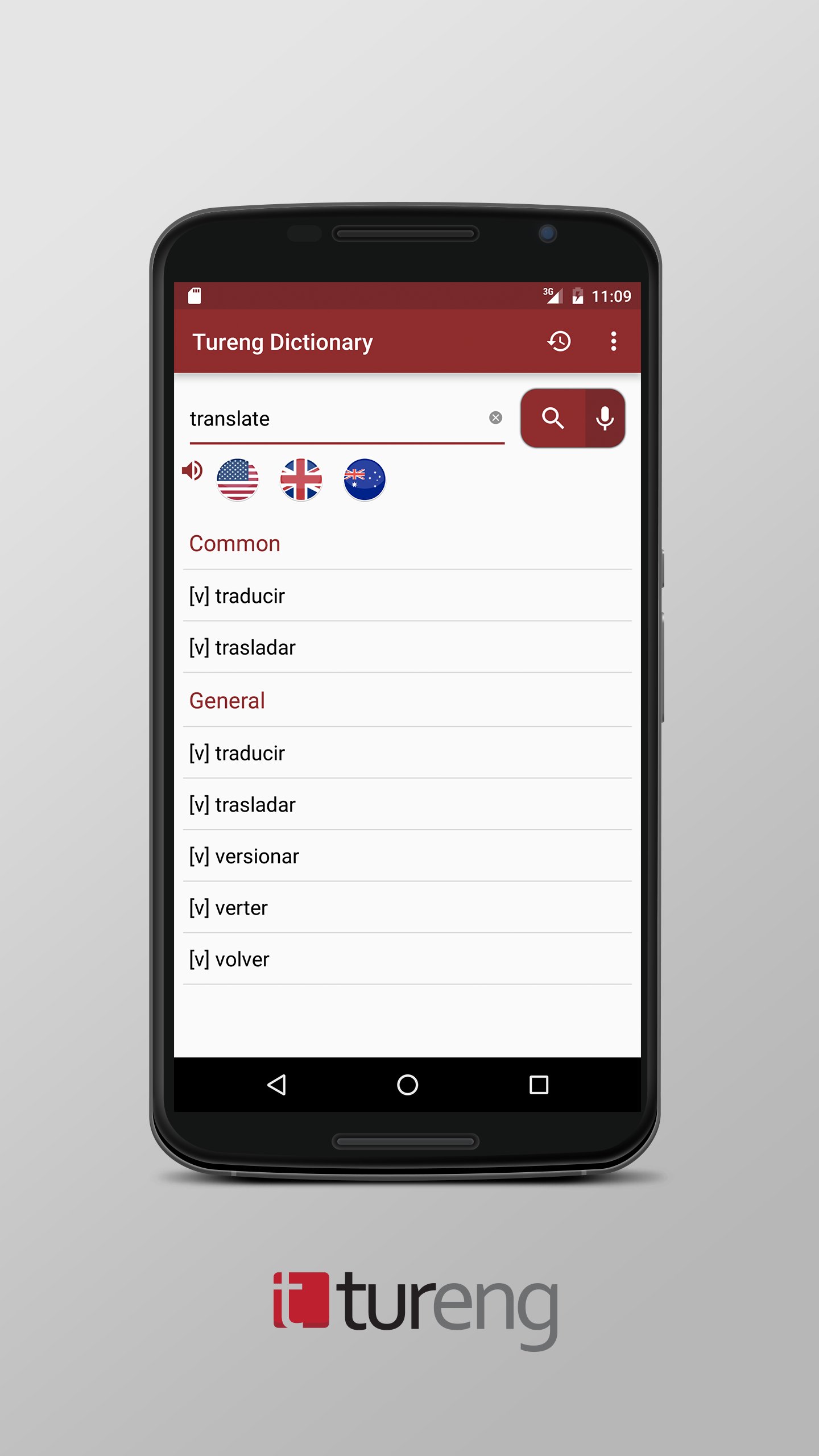 以上3.000.000英語とスペイン語の単語やフレーズを持つ、最速の方法の中で最も正確な結果を与えることを目指し、その使用方法、Tureng辞書の分野別カテゴリーに分類、今の用語を聞くためにaudial発音オプションをユーザーに提供スペイン語(スペイン語、スペイン語、メキシコスペイン語)で2アクセントと三つの異なる英語のアクセント、イギリス、アメリカとオーストラリアの辞書で検索。