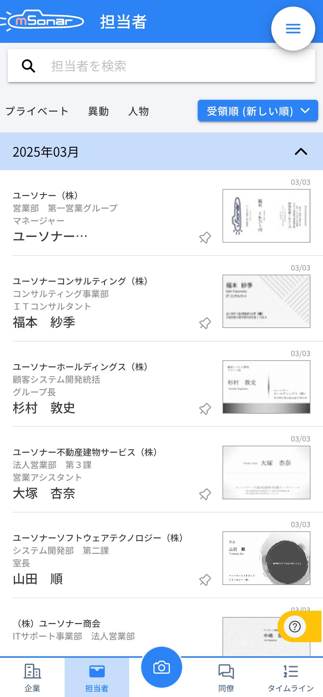 このアプリを使用することで、名刺情報と1250万件の法人情報がマッチングされ、瞬時に売上規模・従業員数・関連会社などの企業情報や過去の接触履歴がモバイル上に表示され、即座に営業活動に活用できる状態を実現できます。また着信時にmソナーに登録されている顧客情報を元に会社名、氏名が表示されます。