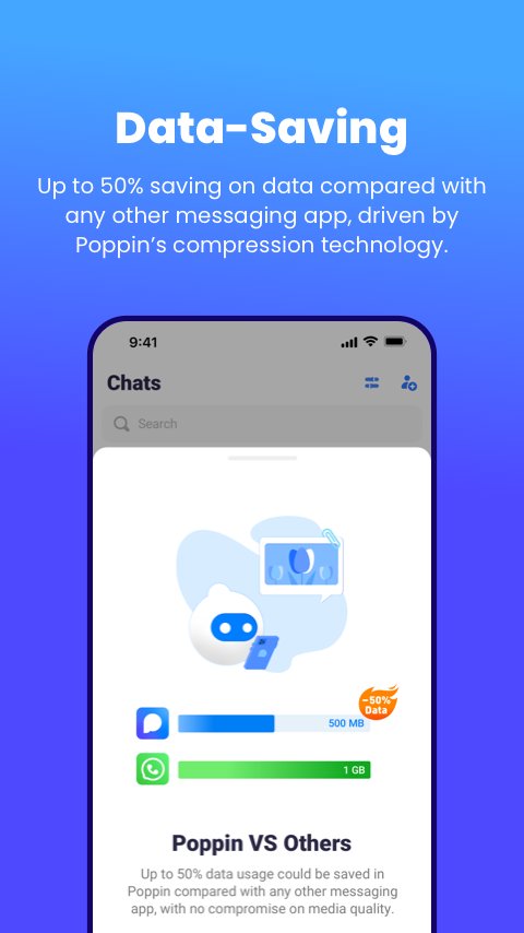 🔥 データ使用量が少ない: Poppin の圧縮技術により、他のメッセージング アプリと比較して最大 50% のデータ節約が可能です。