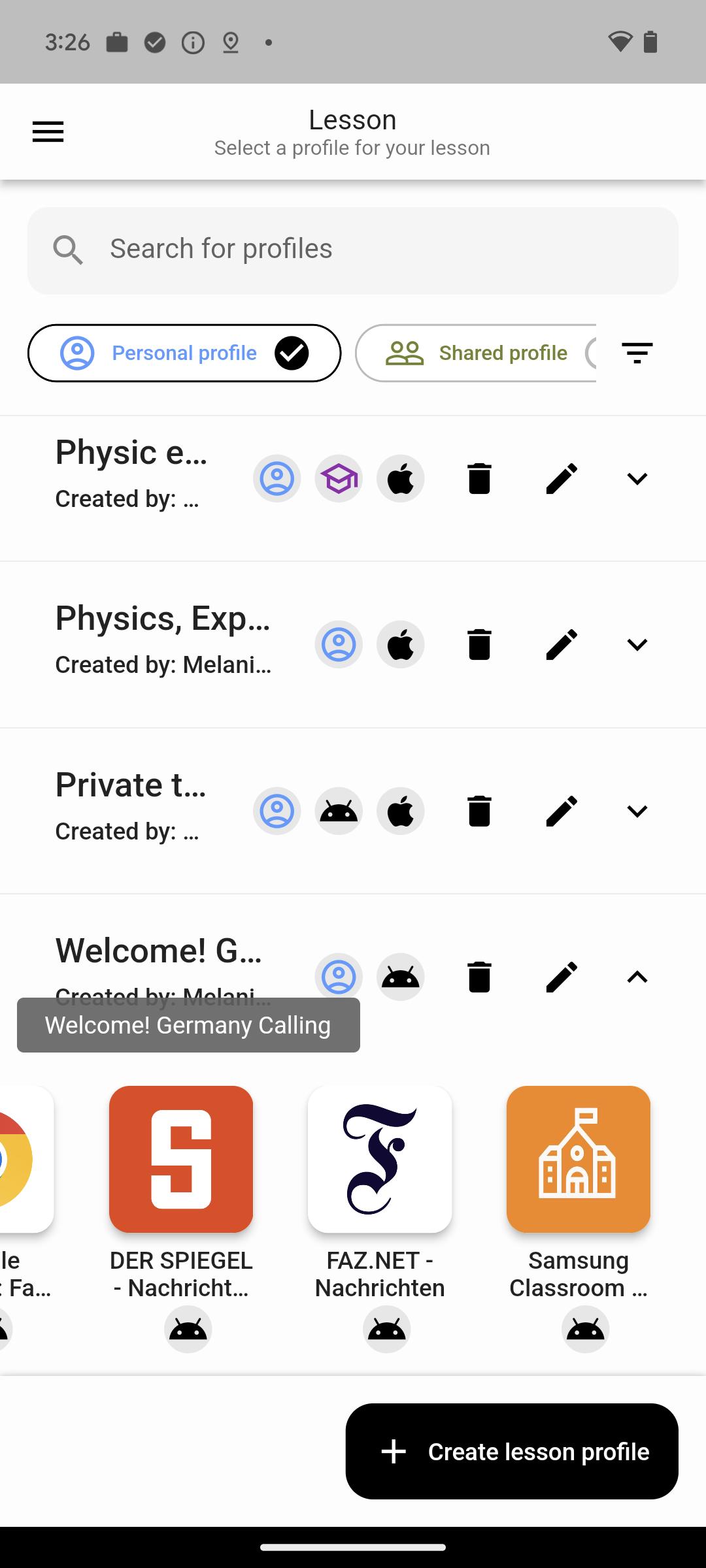 - レッスンの準備のためにパブリックおよびプライベートのレッスンプロファイルを作成します。