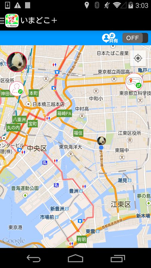 このアプリを使えば、事前に友達登録した相手の位置がリアルタイムでマップに表示されるので参加者も応援者もお互いがどこにいるかを知ることができます。