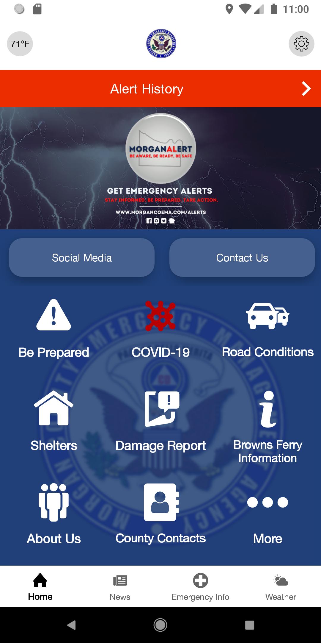 The Morgan County EMA app is intended to provide you with everyday information about our office and the services we provide, as well as the ability to provide emergency notifications to your phone.