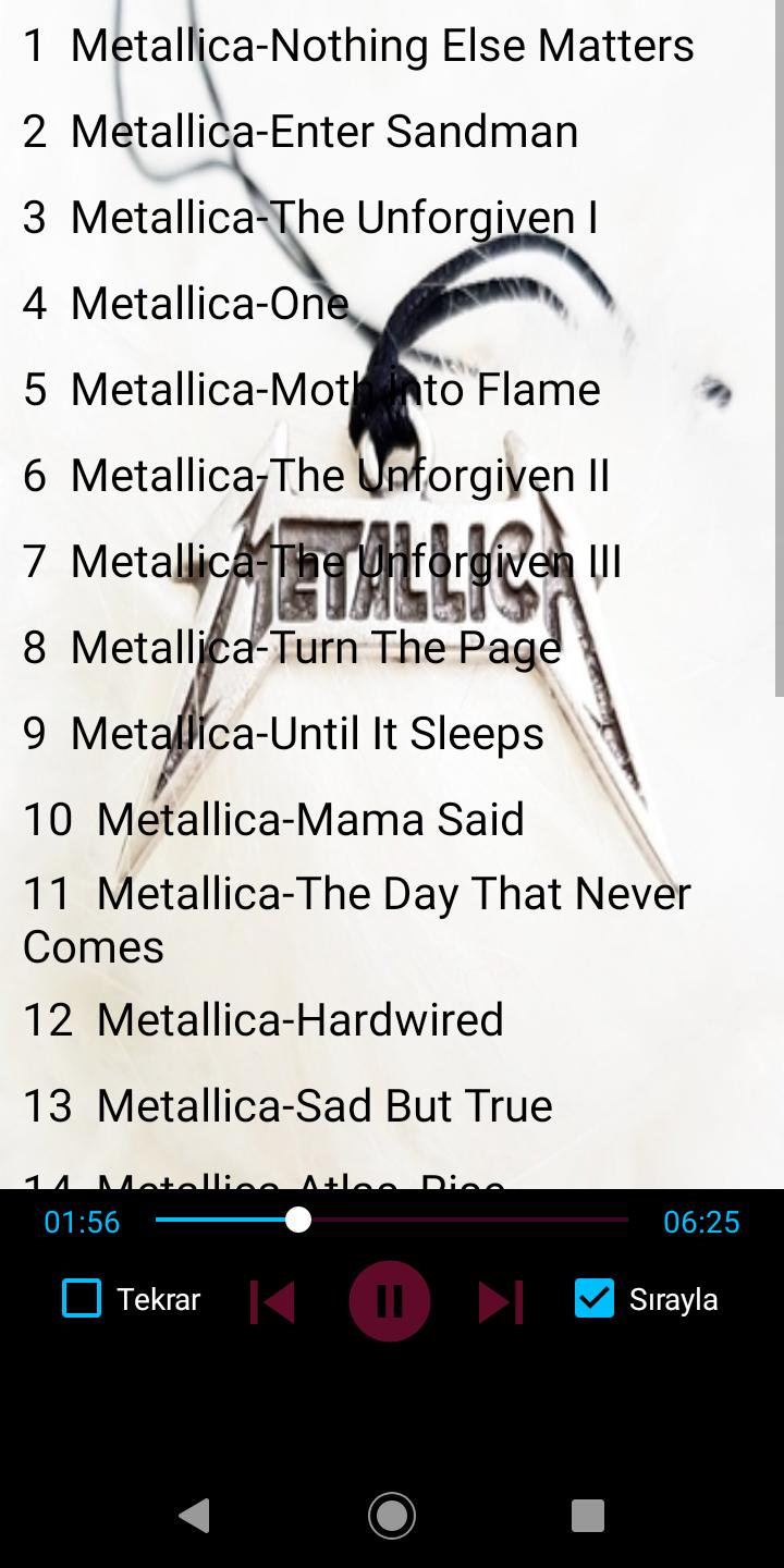 With new version of application, you may listen to Metallica's best songs. Metallica is king of heavy metal music. İf you like heavy music, this application is waiting for you to download. And you may find their latest song as well. Rock the music...