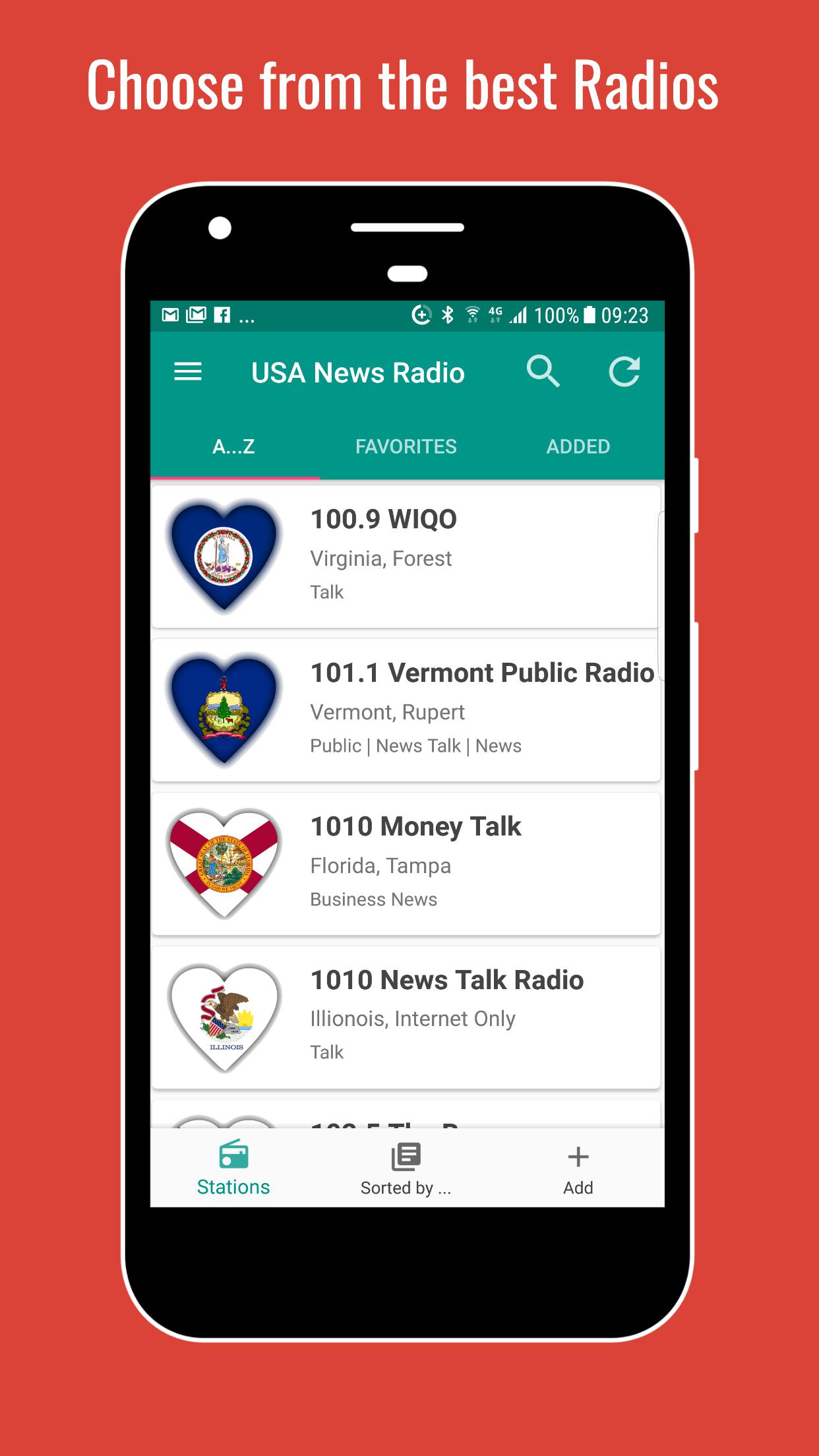 スポーツ、金融、ビジネス情報に加えて、トーク ラジオを多数備えたこのプロフェッショナルな USA ニュース ラジオ アプリを完全に無料で入手し、Android デバイスでトップの USA インターネット ニュース ラジオ局をお聴きください。 USA ニュース ラジオは、州、都市、A ~ Z ごとに並べ替えられています。