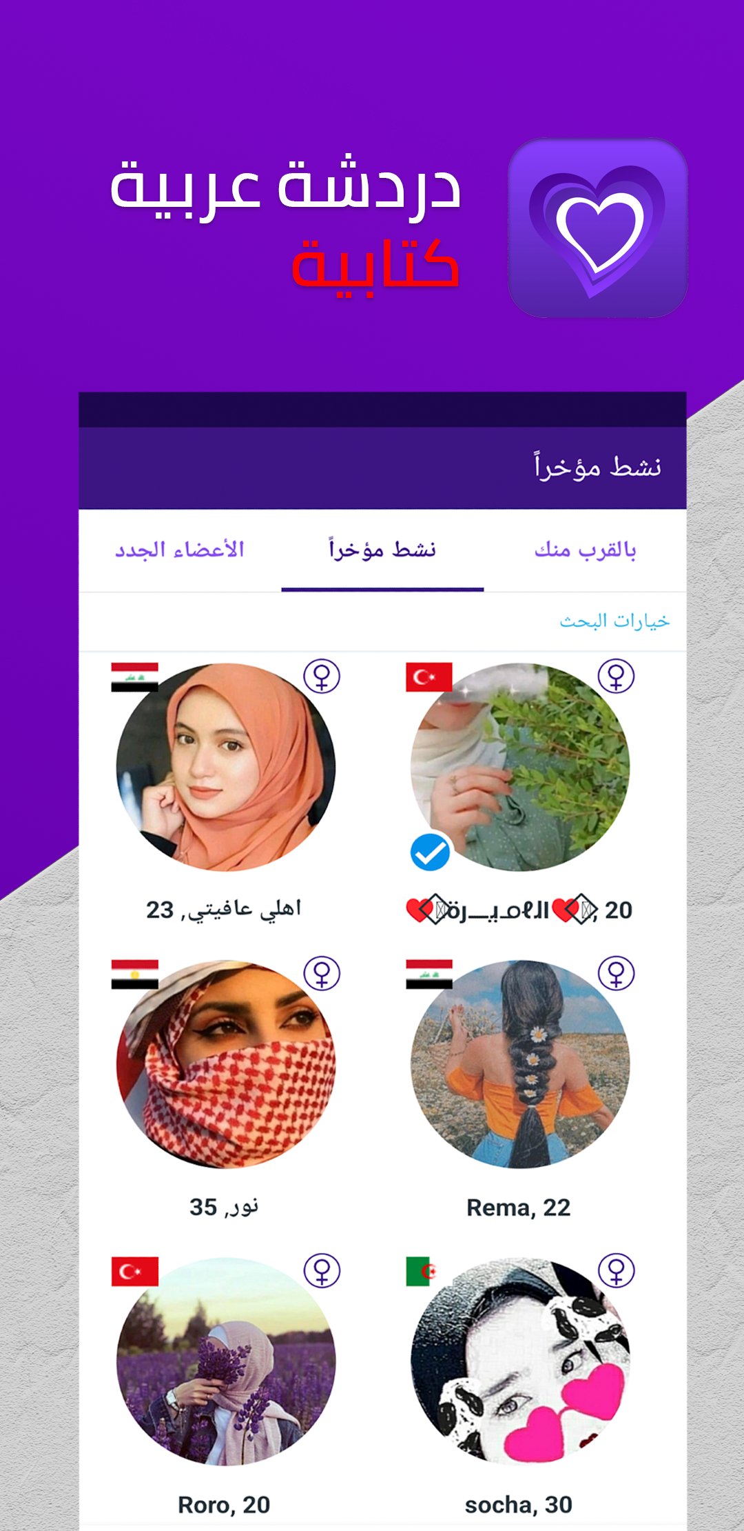 近くの友達と出会いたいですか、それともユニークなデートチャットをお探しですか?アラビア語チャット アプリケーションを使用すると、安全で使いやすい環境でアラブ世界各地からの新しい人々とコミュニケーションをとる機会が得られます。アラビア語チャットを使用すると、文字チャットや音声会話を通じて他の人と交流し、簡単に知り合いの輪を広げることができます。
