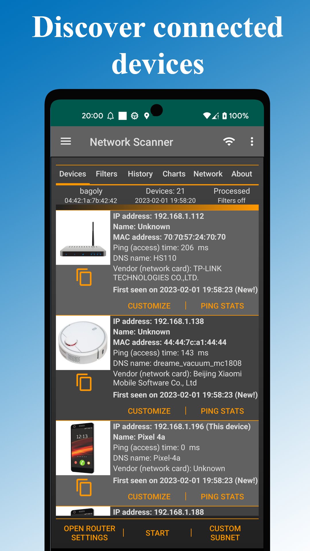 ✔ 既に接続されているネットワーク デバイスの履歴を簡単に確認し、新しく接続されたネットワーク デバイスを検出します。