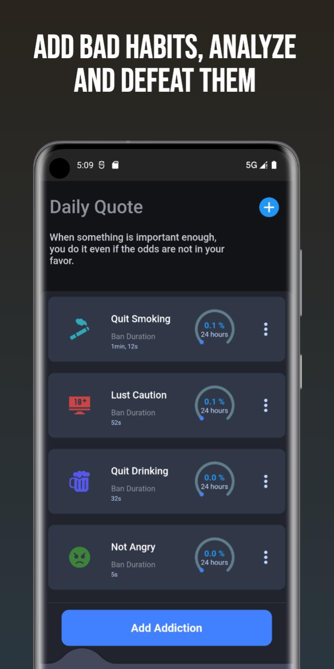 中毒を克服するのは難しい。 Quitwillを使用すると、悪い習慣や依存症に応じてそれらを分析して永遠に打ち負かし、アプリケーションを使用できます。自己啓発と個人の成長を加速させます - 中毒や悪い習慣を取り除きます。