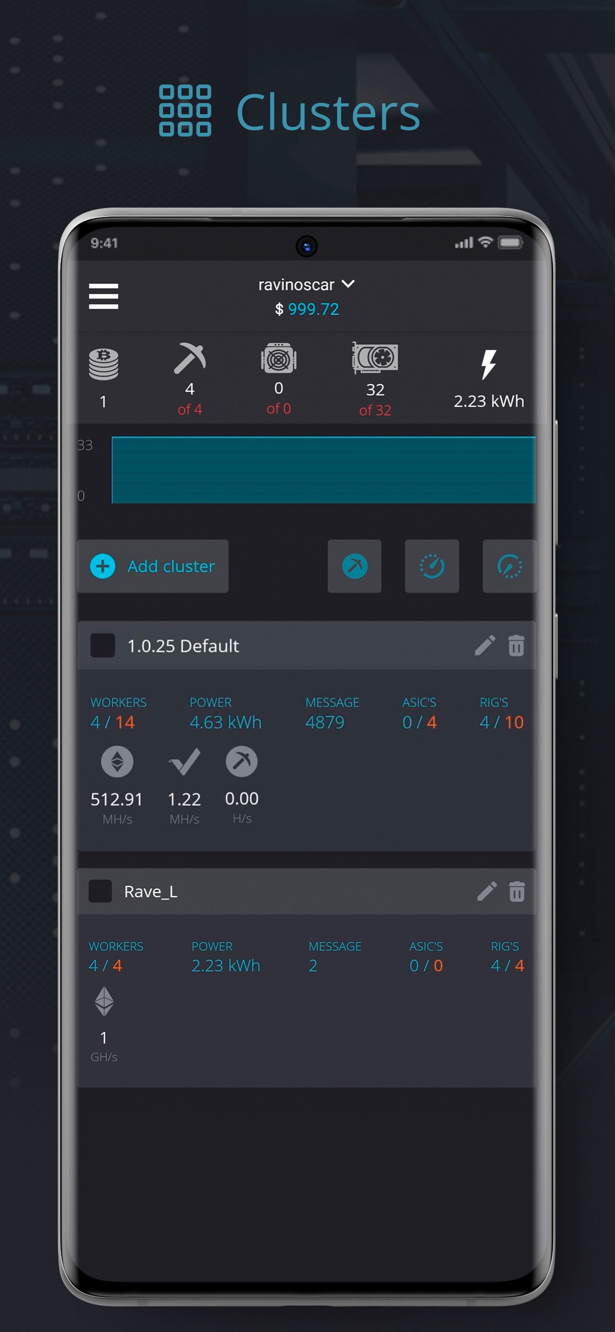 RaveOsアプリケーションを使用すると、すべてのマイニングハードウェアをリモートで簡単に管理および監視できます。
