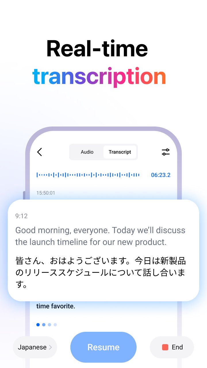 🎙 Hi Voice — 会話に集中してください。あとは私たちが引き受けます 👋 Hi Voiceのご紹介 AI搭載アシスタントで、楽々と文字起こしと翻訳。グローバル会議、多言語インタビュー、忙しい教室など、どんな場所でもHi Voiceがあらゆる単語を捉え、リアルタイムで翻訳し、アイデアを整理するので、聞き逃すことはありません。⸻ 🔍 Hi Voiceでできること 🎙 あらゆる音声を録音・文字起こし 会議、講義、通話など、Hi Voiceは音声を瞬時に正確で検索可能なテキストに変換します。 🌍 ライブ音声翻訳(140言語以上) 1つの言語で話すと、別の言語にリアルタイムで翻訳されます。インタビュー、旅行、リモートワークに最適です。 📝 インスタントAIサマリー 何時間もの音声を確認する必要はもうありません。数秒で簡潔で構造化されたサマリーを作成できます。 🧠 スマートスピーカー認識 スピーカーを自動的に検出してラベル付けし、明確で整理されたトランスクリプトを作成します。 📅 カレンダー統合 会議カレンダーから 1 回タップするだけで録音を開始できます。セットアップは不要です。 🔐 プライベート。同期済み。安全。データは暗号化され、デバイス間で同期され、完全に制御できます。 ⸻ 💼 多忙な人向けに構築 • メモを取ることではなくアイデアに集中したいプロフェッショナル • 信頼性の高い講義メモが必要な学生 • さまざまな言語でインタビューを行うジャーナリスト • グローバルに共同作業を行うリモートチーム • コミュニケーションのギャップを埋める旅行者または多言語家族 ⸻ 🚀 Hi Voice が愛される理由 ✅ 手動でメモを取る時間を節約 ✅ 言語の壁を即座に取り除く ✅ 会議を整理してアクセスしやすくする ✅ ポケットにスマートアシスタントがいるような感覚 ⸻ 💡 今すぐ Hi Voice を試す 楽なコミュニケーションの自由を体験してください。もうメモを取る必要はありません。詳細を見逃すこともありません。いつでもどこでも、AI を活用した明確で正確な理解が得られます。 ⸻ 📬 お問い合わせ ご質問やご意見がございましたら、いつでもお気軽にお問い合わせください。📧 customer-support@hitranslate.ai