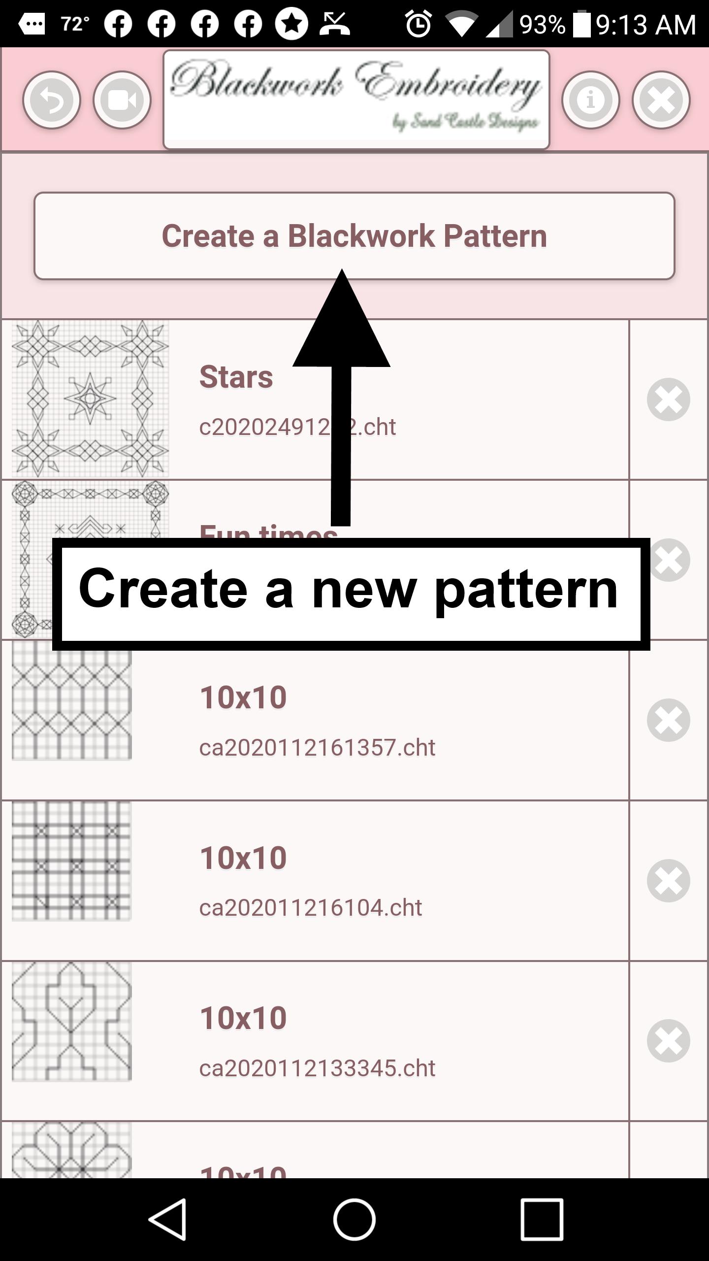 22. Share button - share a picture of your Blackwork pattern using email, text etc.