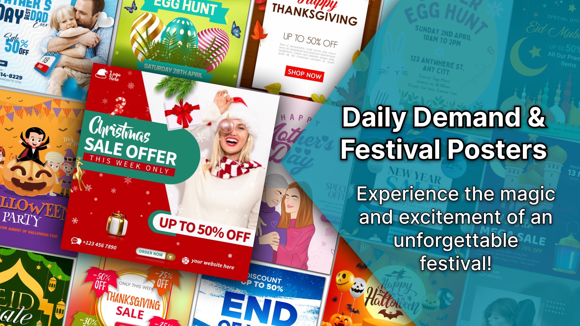 🔥 Festival Poster Maker & Flyer Maker: Festival Poster Maker & flyer maker inherits a diverse range of sale offer & party design templates for all events & festivals including Christmas, Easter, Halloween, Thanksgiving, New year, Black Friday, Eid & Valentine Day.