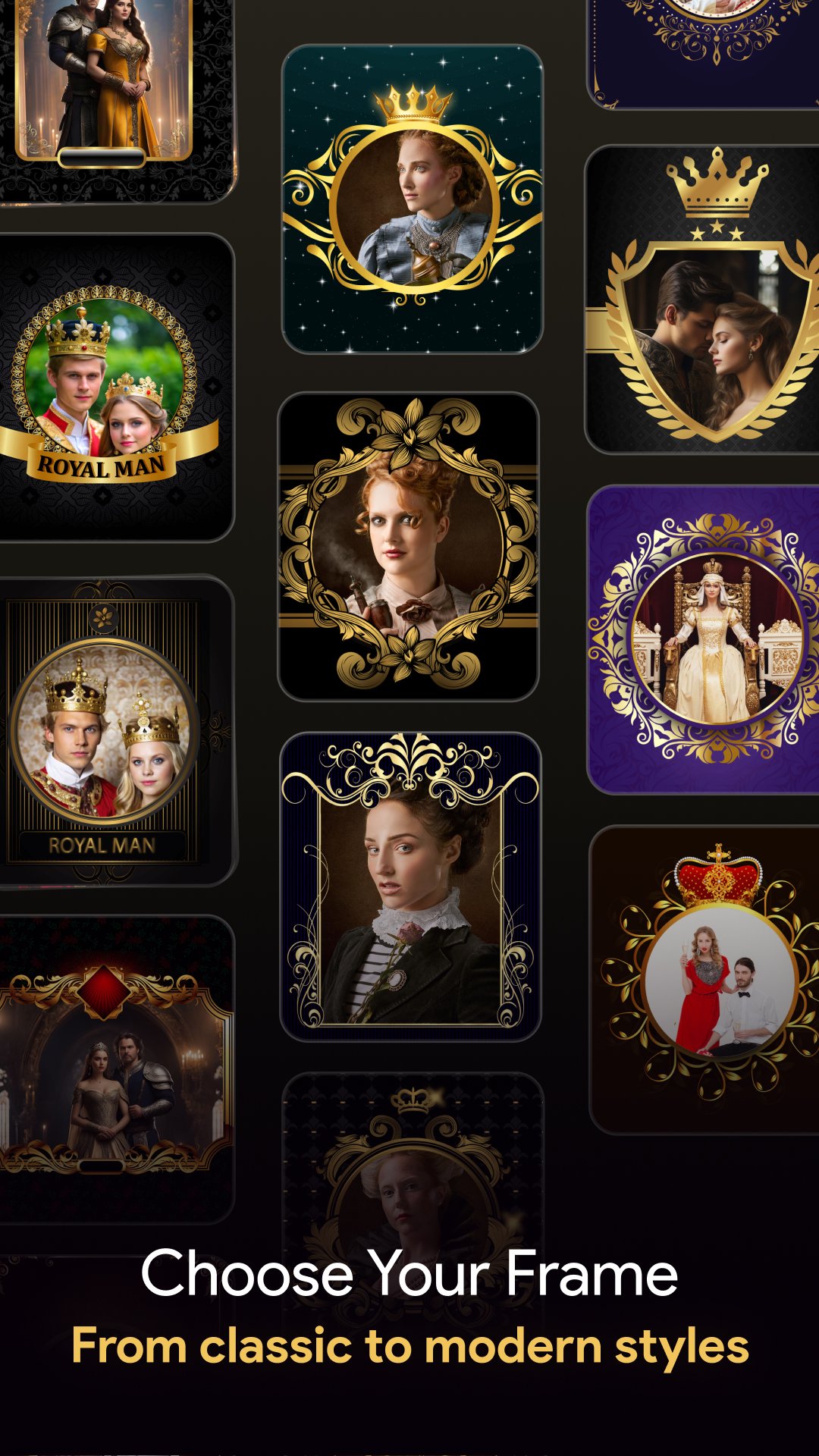 • Royal, decorative, and luxury photo frames with ultimate photo effects are available.