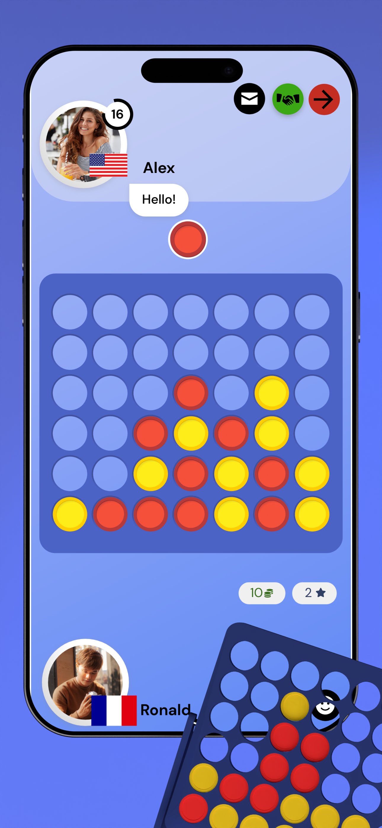 No internet connection? No problem! We offer you the strategy games experience also offline. Play 4 in a row in offline multiplayer games with friends on one device 1vs1 in hotseat mode. Are you ready to connect 4 in a row, level up and enjoy the board game?