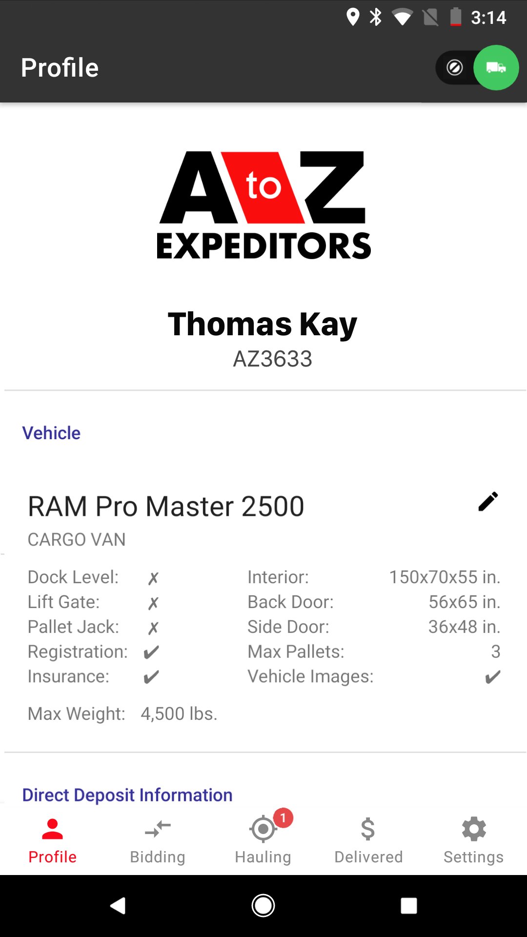 This app allows seamless bidding, tracking, and management of loads for A to Z Expeditor's community of drivers.