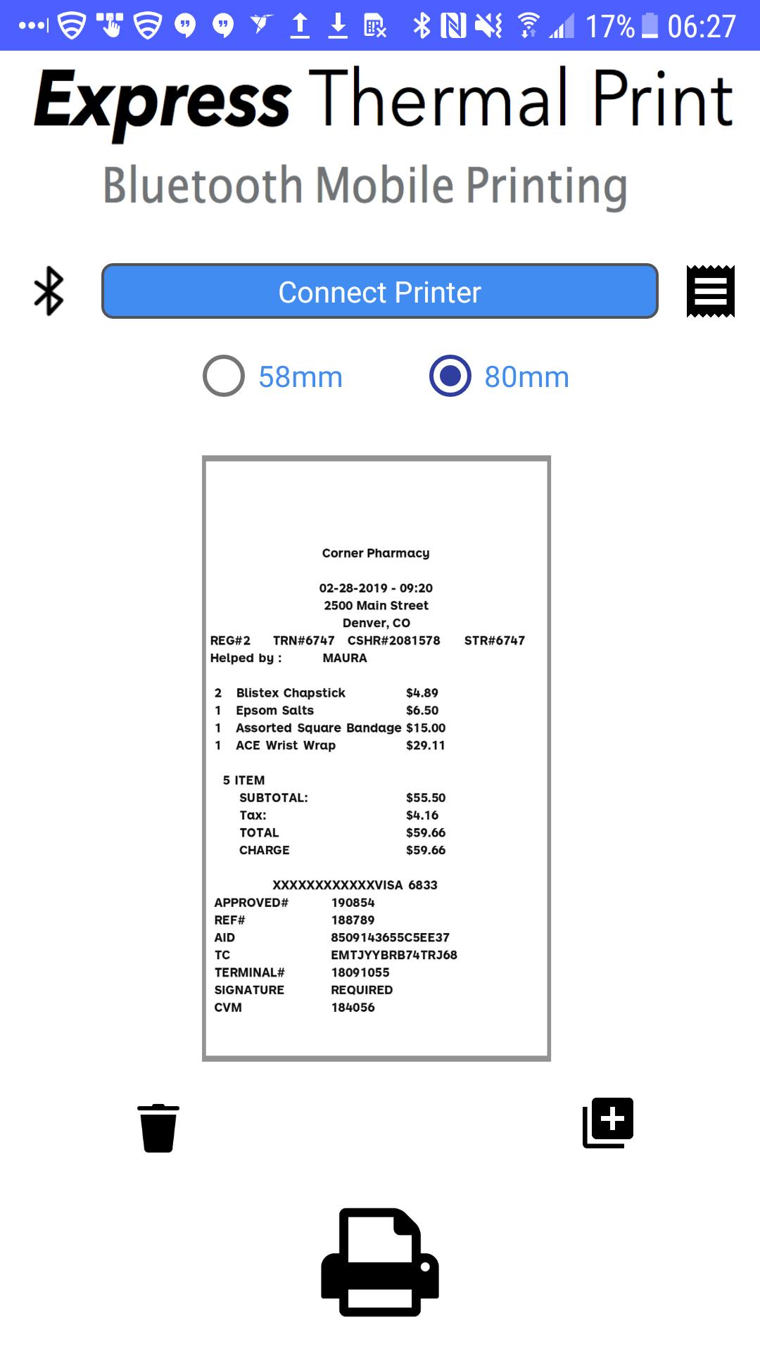 Easily print from any app - just "Share" to Express Thermal Print and your receipt will print.