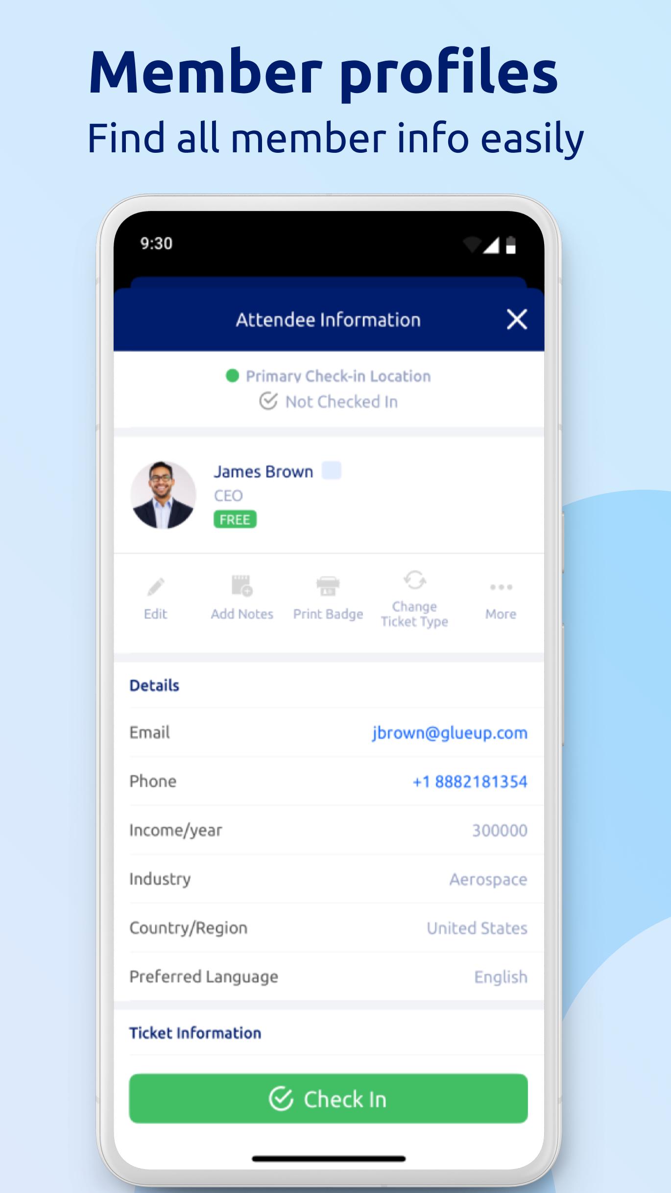 * Check in attendees quickly, update event details, and keep all data synchronized with the cloud platform