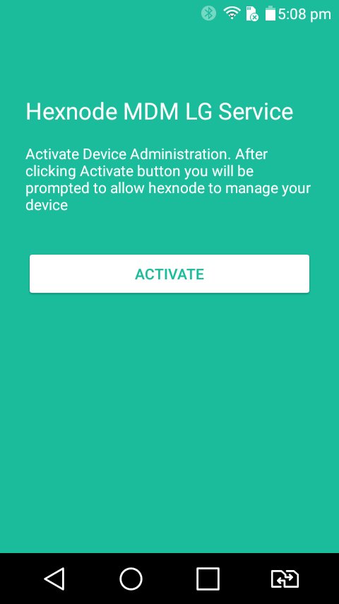 Hexnode MDM LG Service app provides support for the LG Mobile Device Management API and activates advanced MDM restrictions.