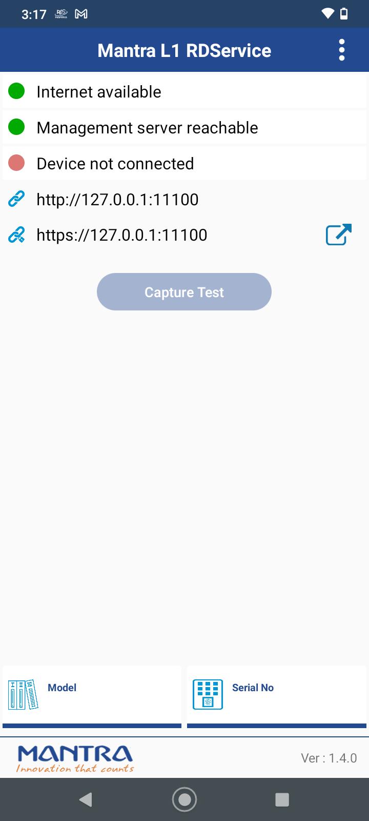 Mantra L1 RDService, proveniente del desarrollador Mantra Softech India Pvt Ltd, se ejecuta en el sistema Android en el pasado.