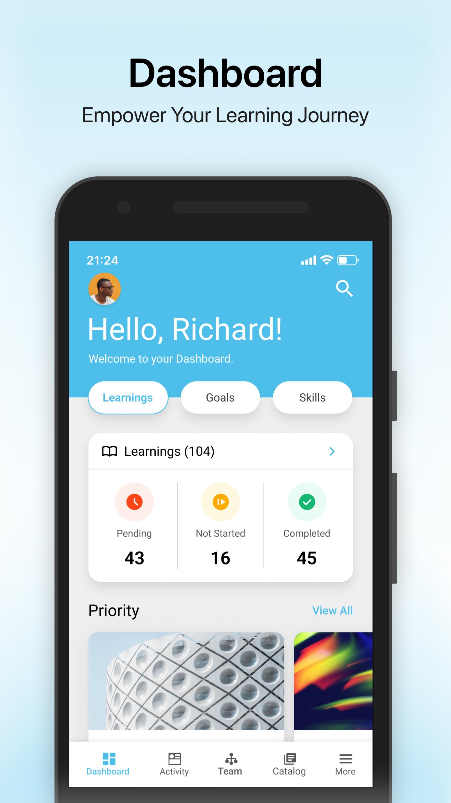- With the instant progress synchronization between the mobile app and the LMS, switch back and forth between devices seamlessly