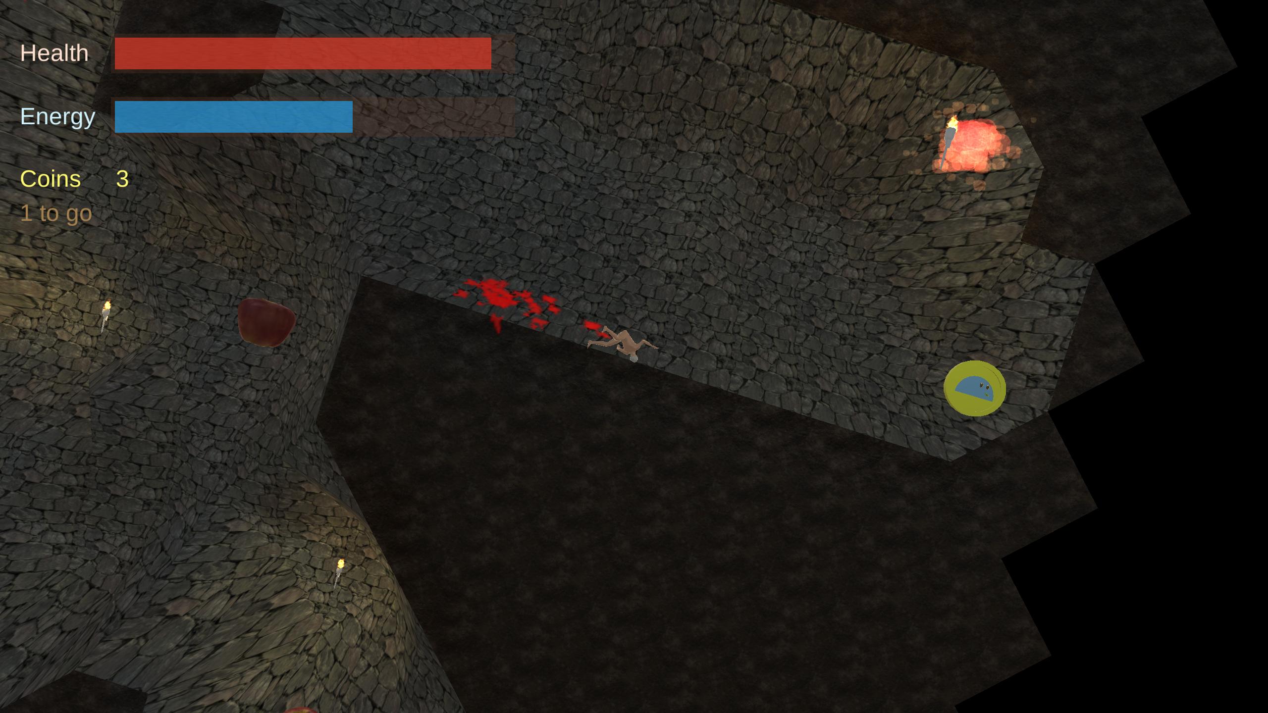 You find yourself lost in a cave naked and can't move your limbs. Luckily you find a mystic artefact in your pockets which allows you to rotate the cave so you can fall to other areas.