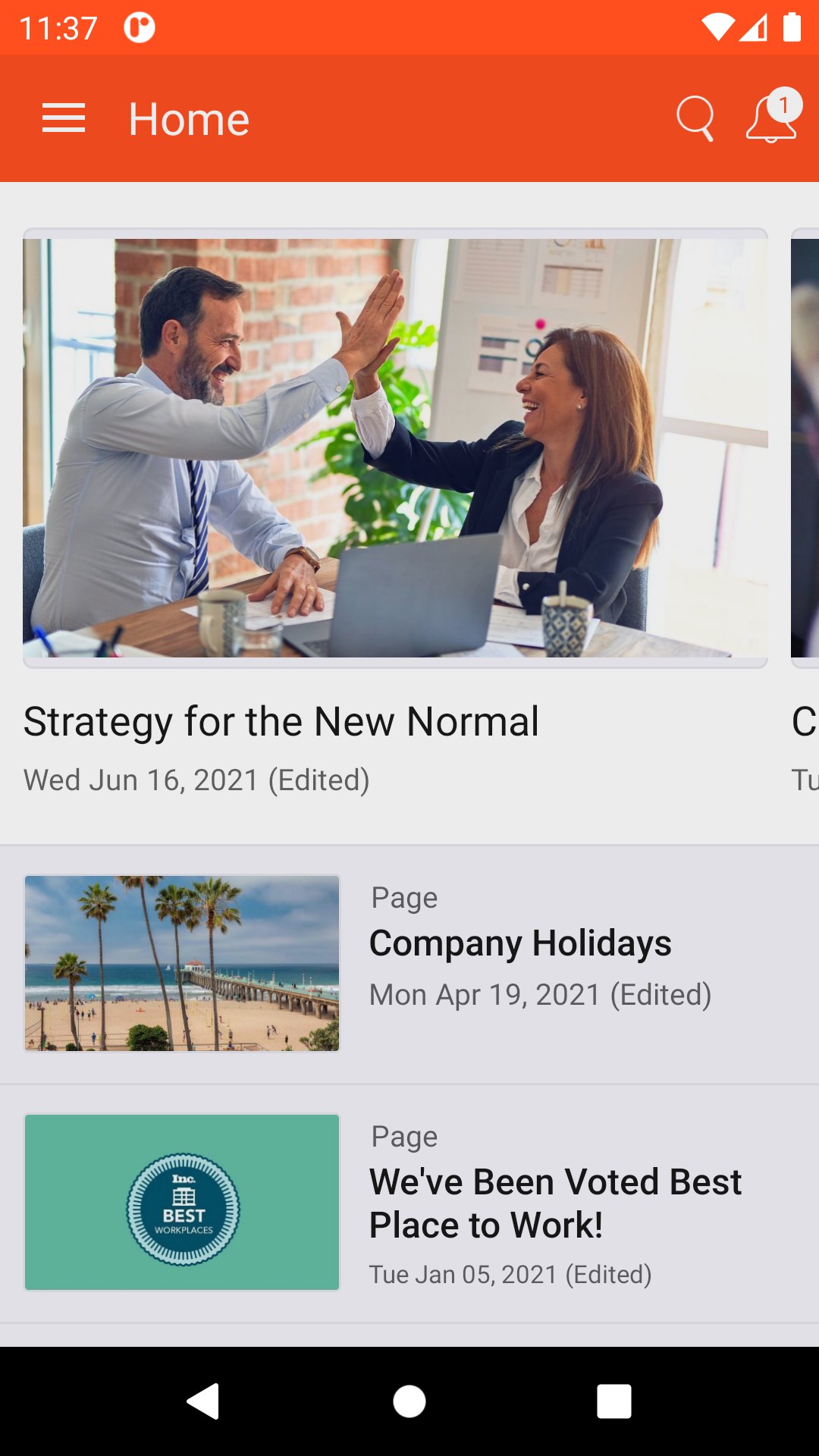 - Get push notification alerts about important news, must-read content and intranet interactions.
