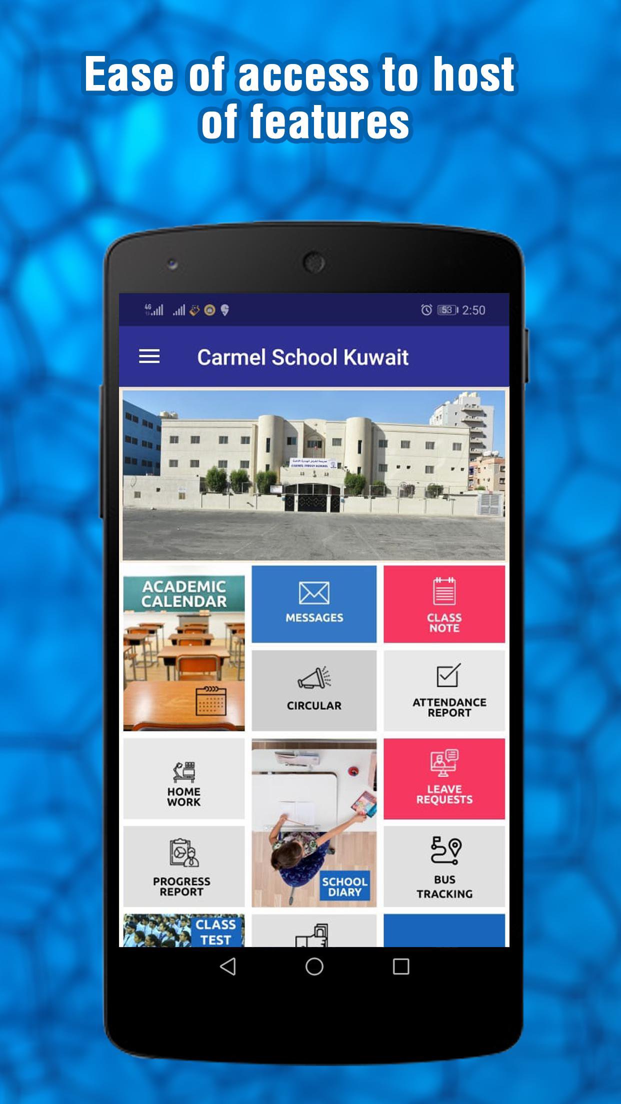 The school is recognized by the Ministry of Education, Kuwait and affiliated to the Central Board of Secondary Education, New Delhi. It is governed by the Registered Society of the Congregation of the Apostolic Carmel, India. The school prepares students for the All India Secondary School Examination (AISSE/Class X) and the All India Senior Secondary Certificate Examination(AISSCE/Class XII).