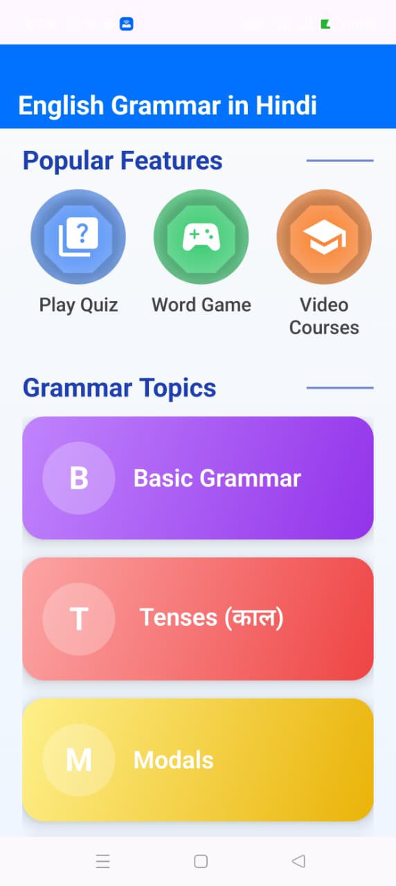 If you want to learn these types of English Grammar Topics with quizzes, then this is the best English Grammar app for free learning English in my opinion. English with Chintu is the best for learning Full English Grammar app in Hindi.