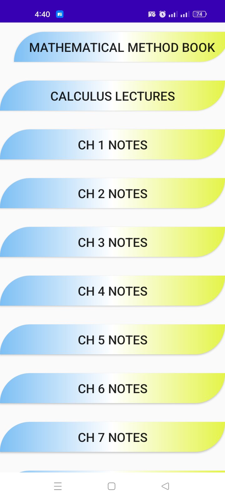 This app contain Mathematical Methods Text Book ,Notes And Lectures of sm yusuf