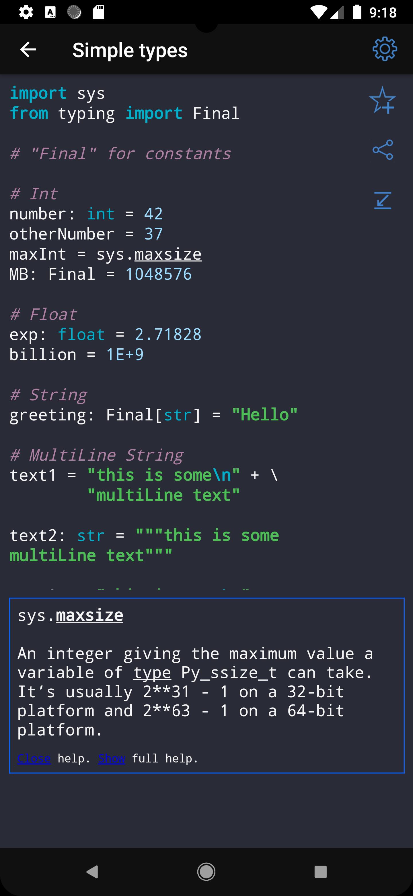 ✓ Learning Python 3 syntax on specific code examples. How to get a substring? How to declare a generalized method? These and over 300 of other code samples for Python are available in the application.