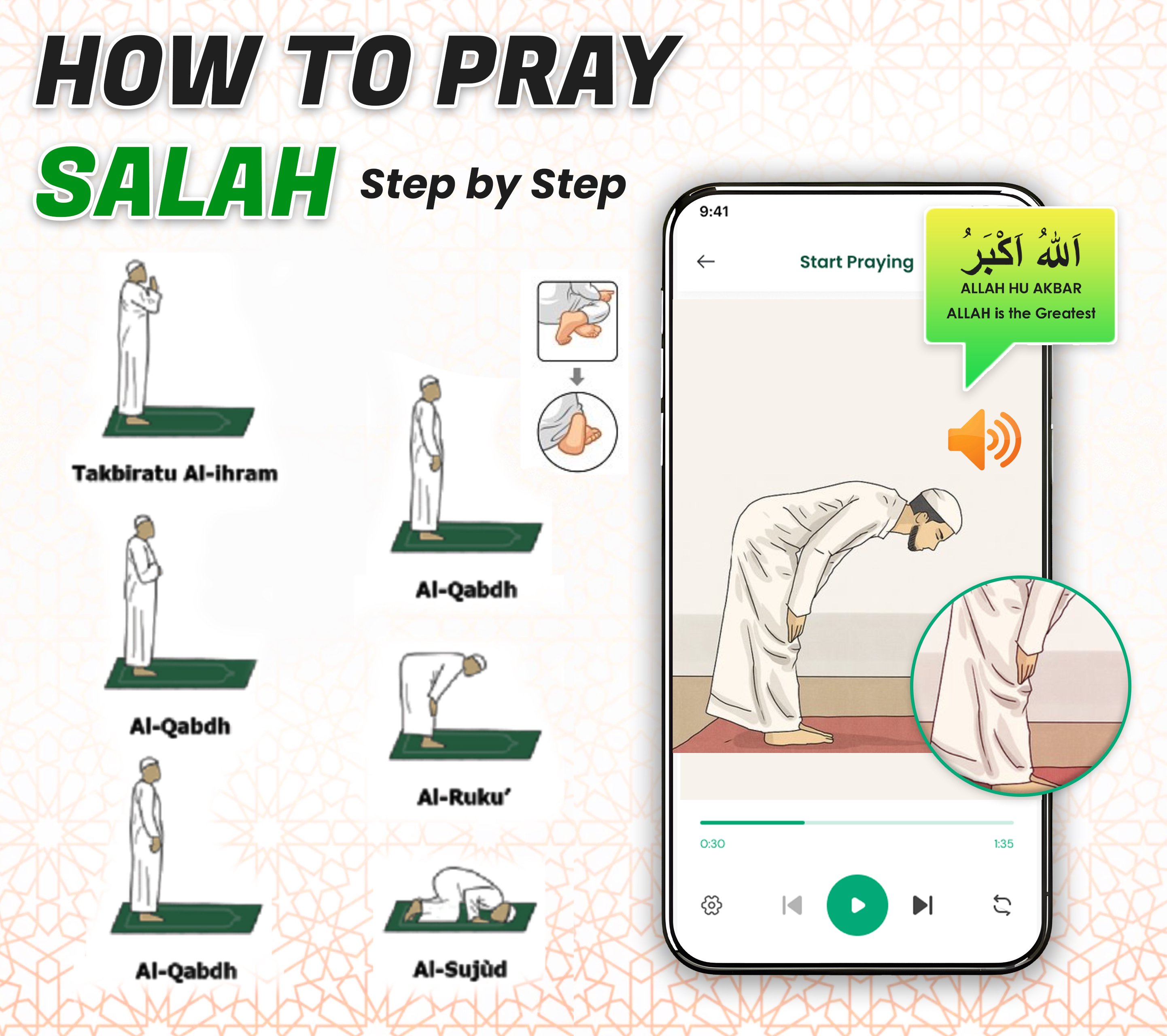 Step by Step Salah is an Islamic smartphone app designed to guide Muslims worldwide on effectively offering prayers (Namaz) with comprehensive information. This app provides in-depth illustrations and audio guidance for each step of Salat prayer, along with Salah times and Azan reminders. With a user-friendly interface, it covers all aspects of daily prayers, non-obligatory Salat, and more.