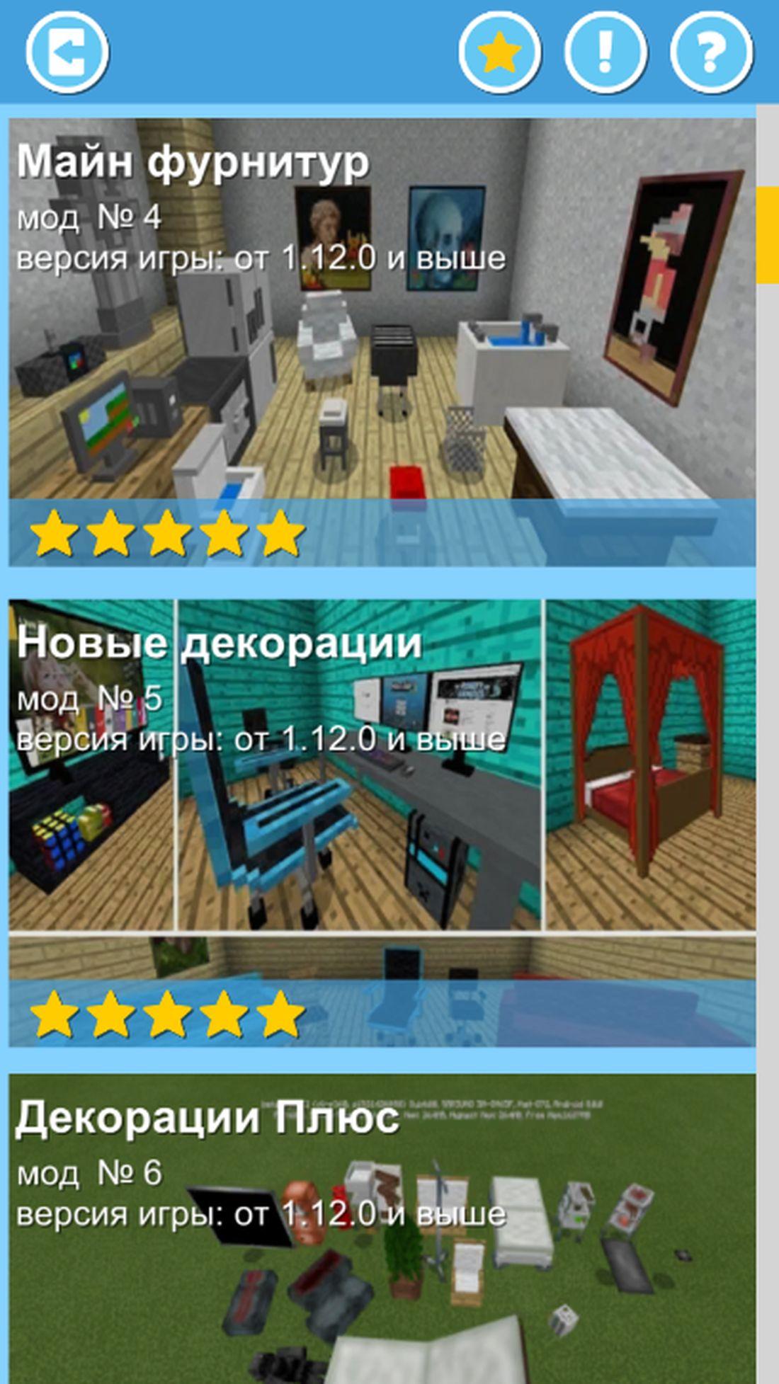 The mod for furniture on an Android phone is an unofficial app with add-ons. This application is in no way affiliated with the developers of the original game for which they are intended. For all questions and complaints, write to us at. mail and we will answer you.