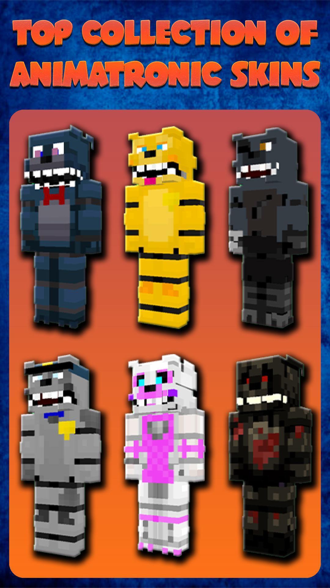 This application is for Minecraft fans, as well as for anyone who wants to diversify their gameplay. By downloading the Animatronic Skins for Minecraft PE, you will get a unique set of skins for your favorite game absolutely free. Especially for you, we have collected a huge collection of the best skins that will surprise not only you, but also your friends. Everyone will choose a skin to their liking and taste. Watch, choose, download, install and have fun. Play with other players with the coolest skins!