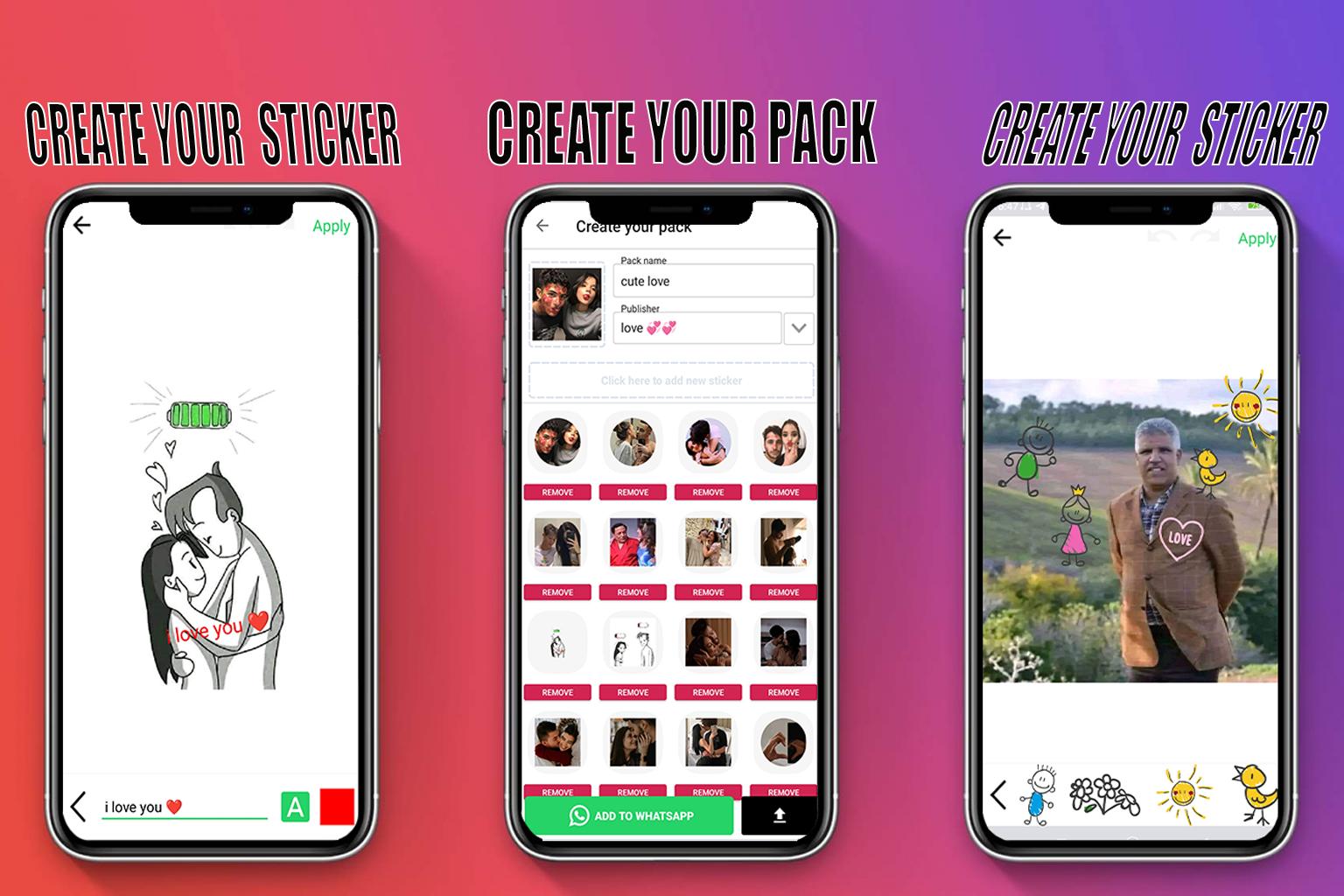 Use the free WAStickerApps love stickers app and add new sticker packs of cute love stickers and love emojis to send funny stickers to your love. Also, use kiss stickers, good morning stickers and love night stickers to greet your lover!