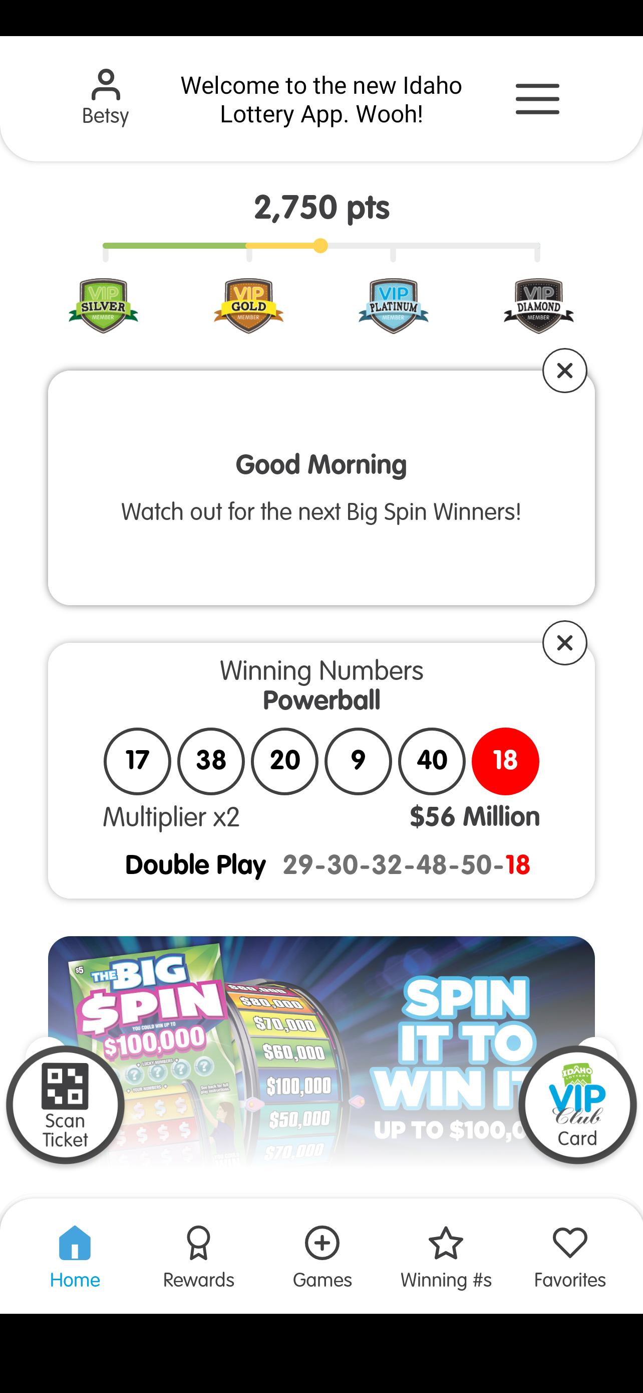 "The new official Idaho Lottery app is here! Now get easier access to your VIP Club card, check your tickets, get coupons, access rewards, enter promotions and much, much more. Get all your Idaho Lottery information including winning numbers, jackpots, scratch game prize details and the location of your nearest Idaho Lottery retailer. Plus, save items you love in the new Favorites section!