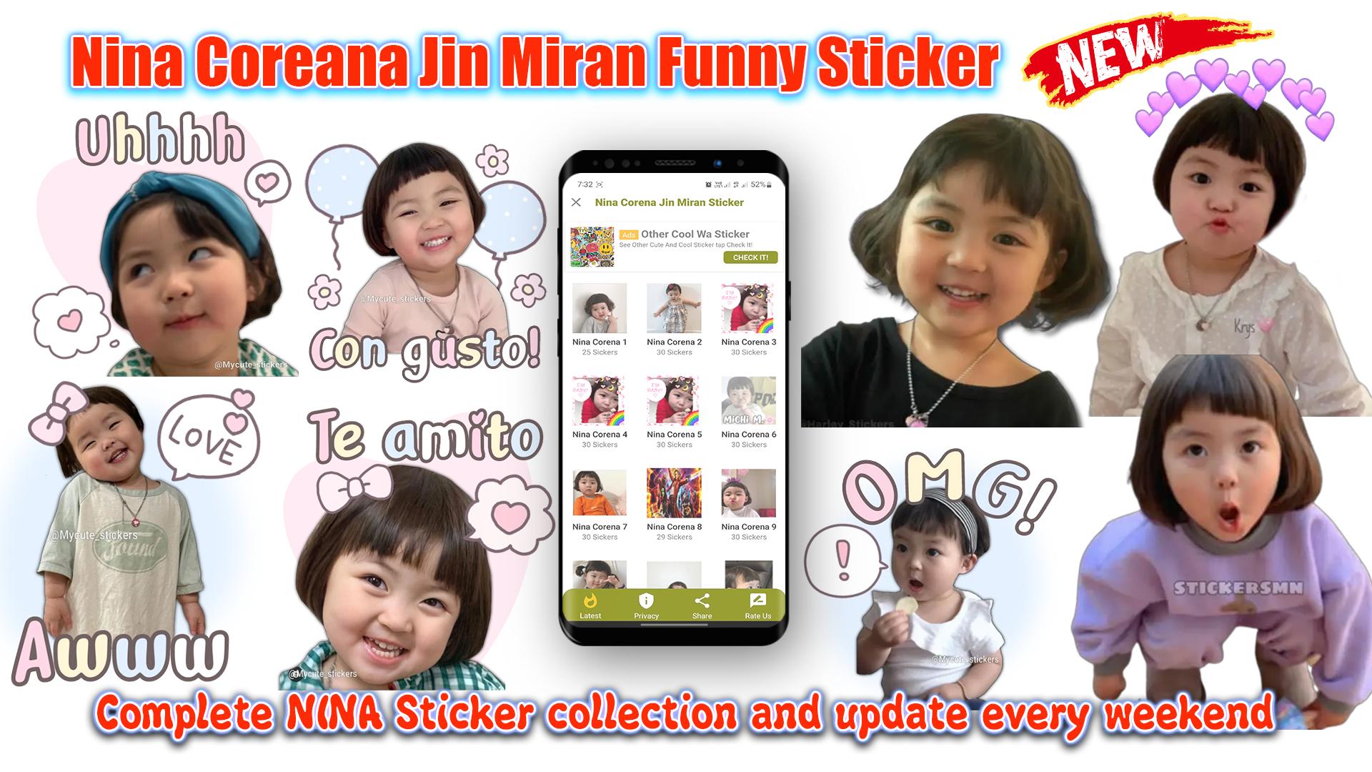 1. Contains thousands of Nina Coreana Jin Miran stickers for wastickerapps.
