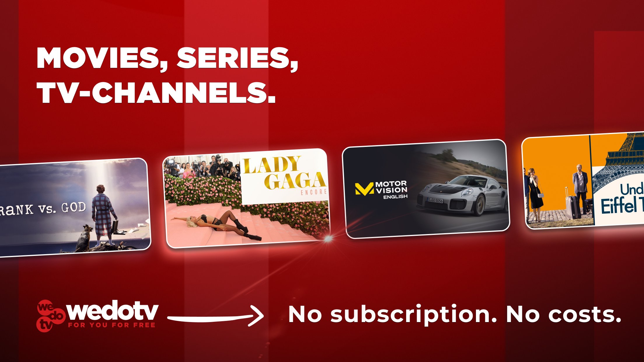 Welcome to wedotv, where entertainment meets freedom. Stream a huge selection of movies, series, live sports, and TV channels, all for free – without the hassle of a subscription or hidden costs. From the latest blockbusters to classic films, from popular series to exciting documentaries, wedotv offers endless entertainment for everyone. All you need is the wedotv app, and you're ready to stream anytime, anywhere – on your phone, tablet, or smart TV.